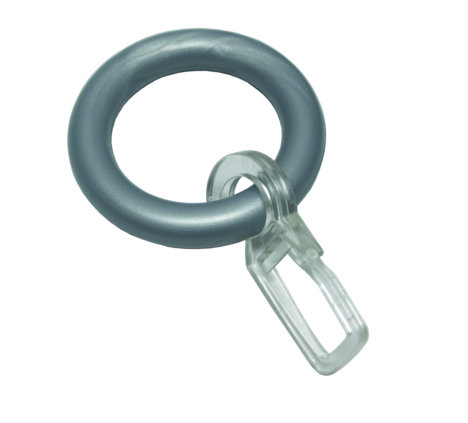 Gardinenringe mit Faltenlegehaken, Kunststoff, silber-matt