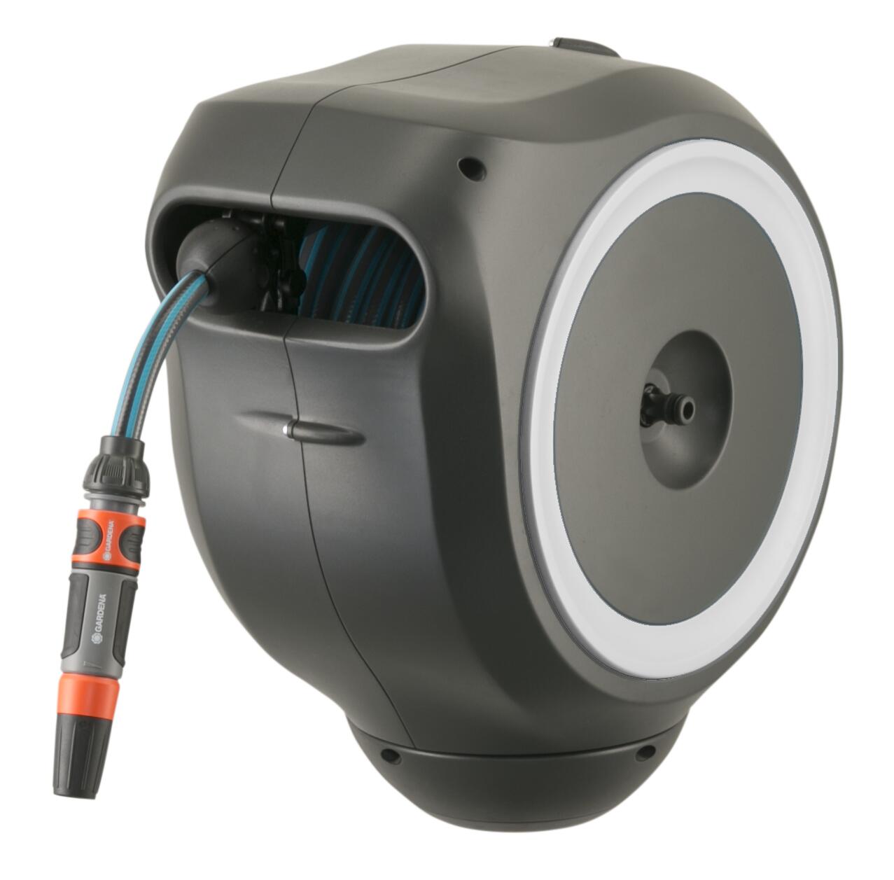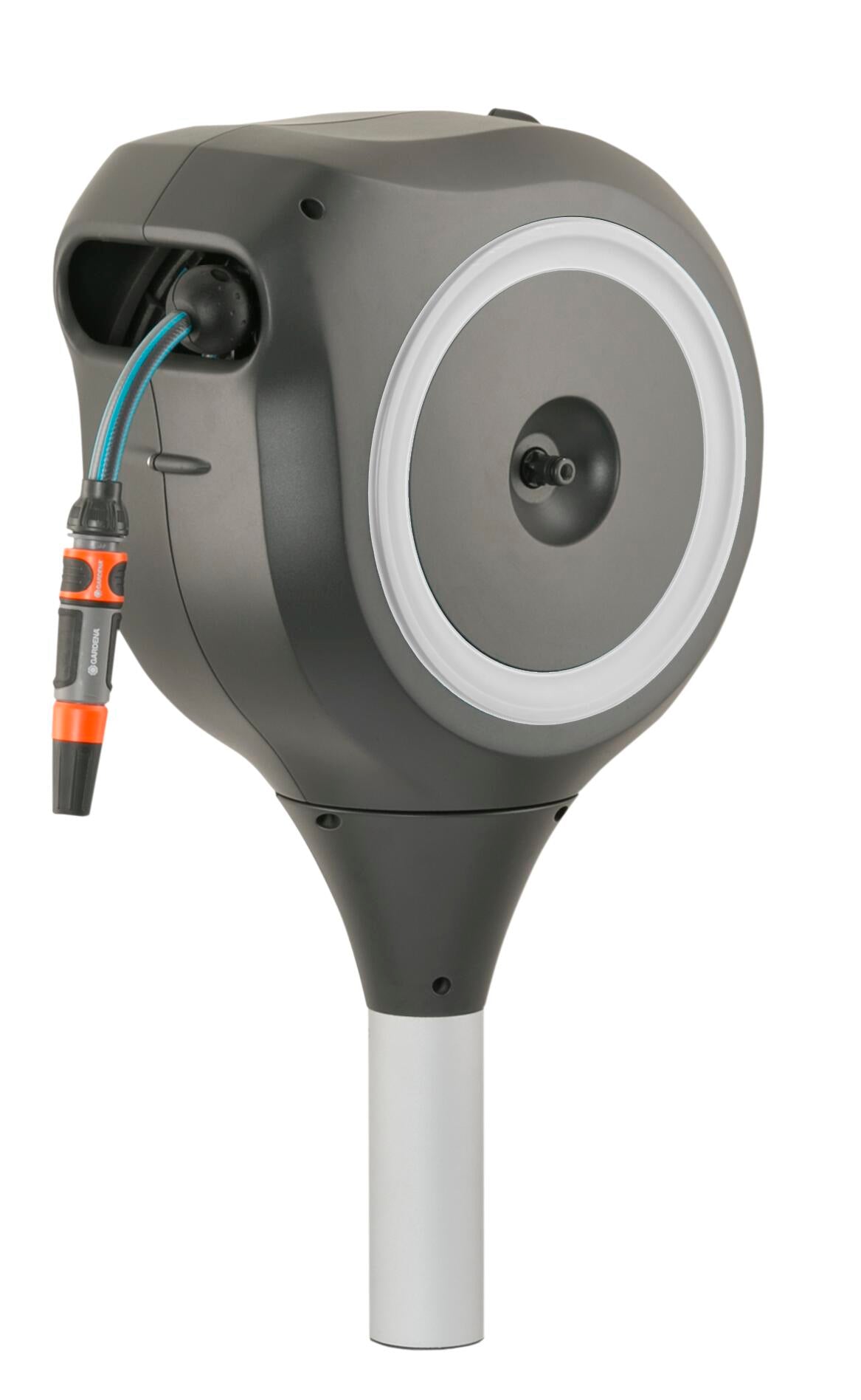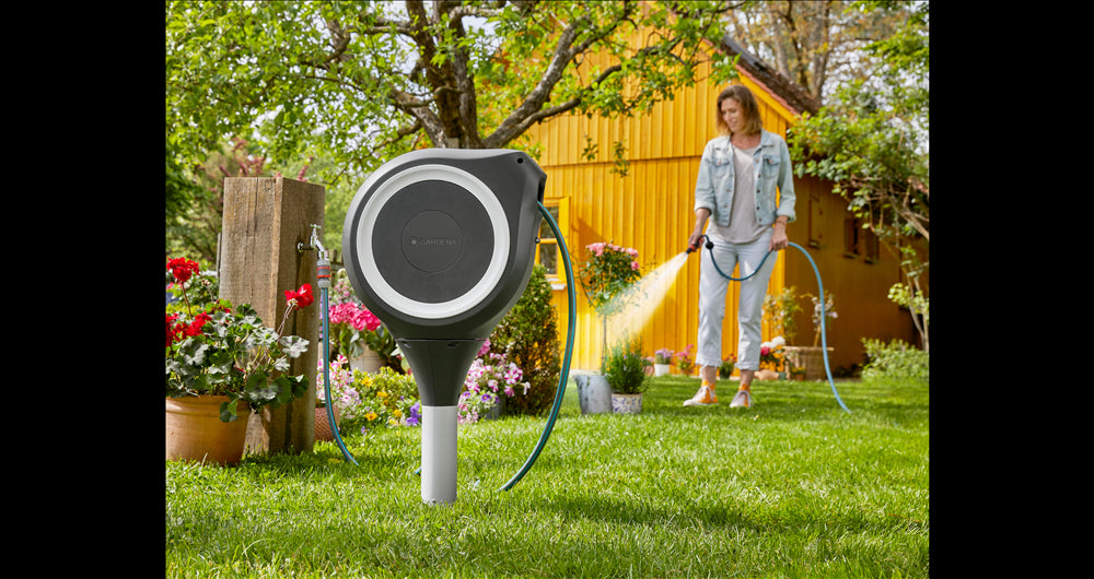 Die Box folgt deinen Bewegungen während des Gießens und verhindert somit, dass der Wasserschlauch knickt oder sich verknotet. Das lästige Kurbeln und Bücken beim Aufrollen entfällt – ein kurzer Zug am ausgerollten Schlauch aktiviert die integrierte Feder, die den Schlauch automatisch und zuverlässig einrollt.