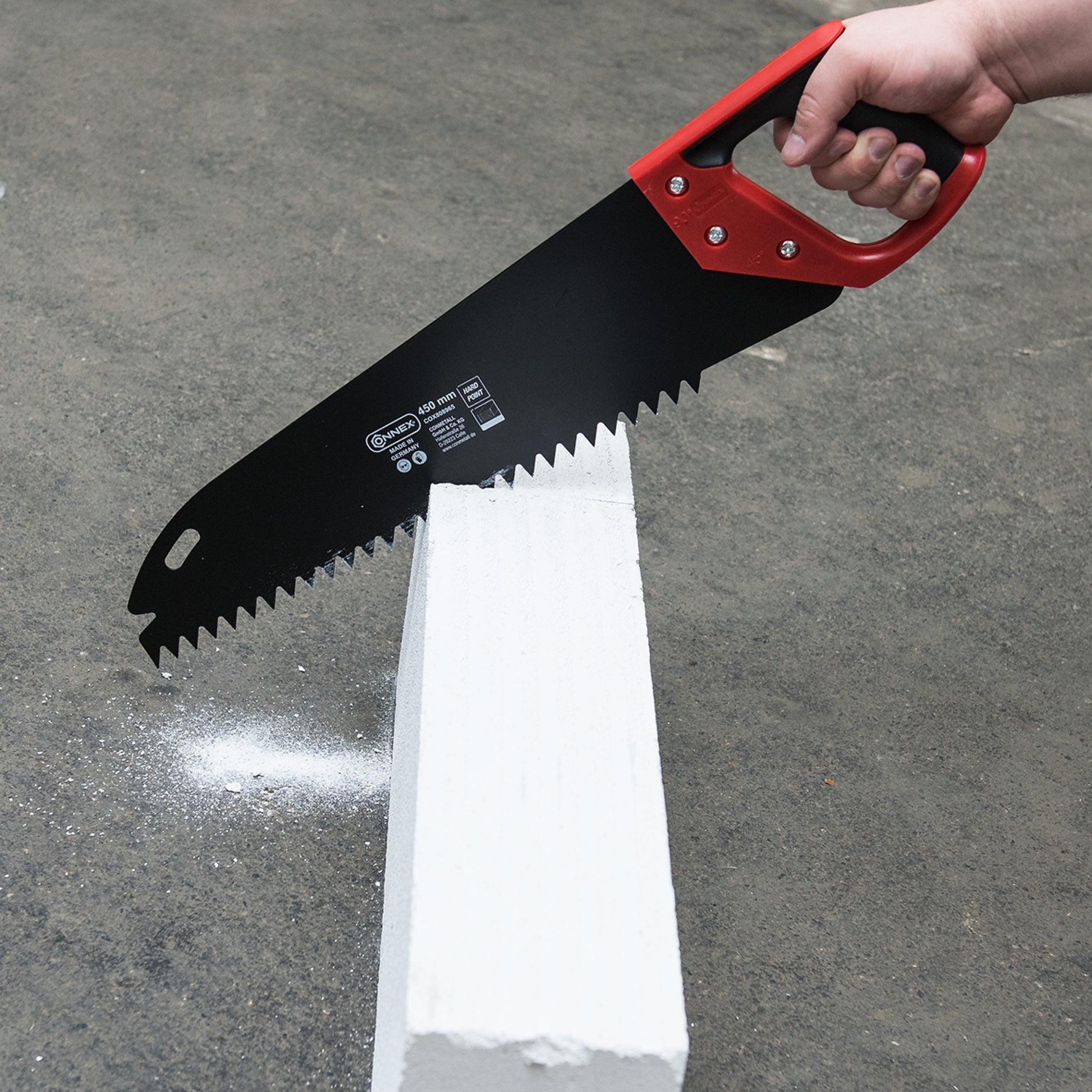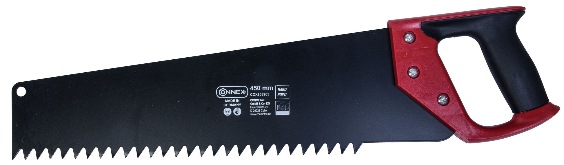 Dreieckverzahnung mit gehärteten Zahnschneiden" Blattstärke 1,6 mm" Spezielle Einbrennbeschichtung für einen erhöhten Korrosionsschutz, sowie eine verbesserte Gleitfähigkeit des Sägeblattes durchs Material" Zwei-Komponentengriff - Hartkomponente gefertigt aus schlagfestem ABS" Besonders geeignet für das Zuschneiden schmaler Planblöcke