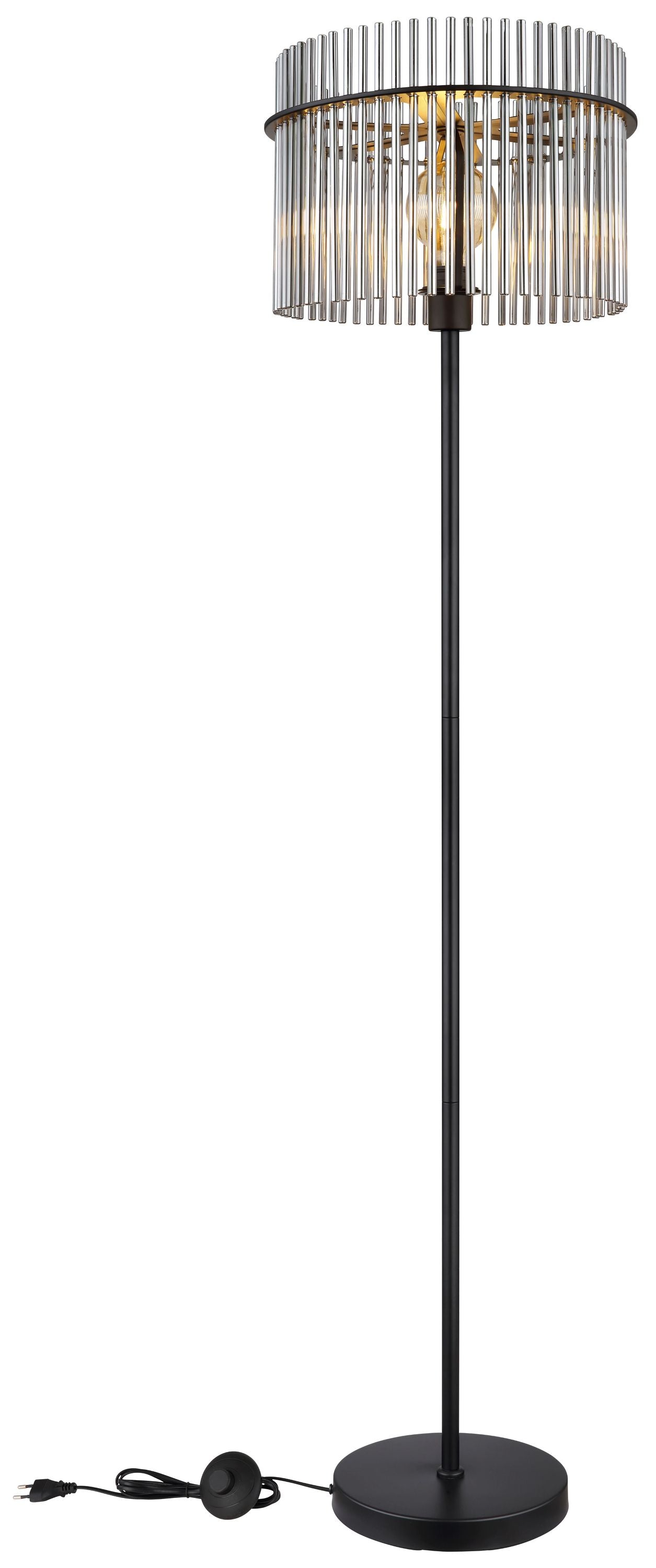 Entdecken Sie die elegante GORLEY Stehleuchte und tauchen Sie Ihr Zuhause in ein stimmungsvolles Licht. Mit ihrem edlen Design aus schwarz mattem Metall und rauchfarbenen Glasstäben wird sie zum Blickfang in jedem Raum. Die GORLEY verfügt über ein langlebiges PVC-Kabel in Schwarz mit einem praktischen Fußtrittschalter für bequeme Bedienung. Mit einem Durchmesser von 380mm und einer Höhe von 1520mm bietet sie eine beeindruckende Präsenz. Das 1800mm lange Kabel ermöglicht Ihnen flexible Platzierungsmöglichkeiten. Die E27 Fassung ermöglicht Ihnen bis zu einer maximalen Leistung von 60 Watt, selbst über Lichtfarbe und Helligkeit zu bestimmen. Verleihen Sie Ihrem Wohnraum mit der GORLEY das gewisse Extra an Stil und Atmosphäre.