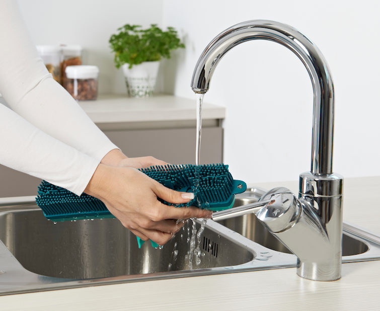 Kehren, Wasser abziehen und Wischen - mit dem Gummibesen-Aufsatz von Leifheit