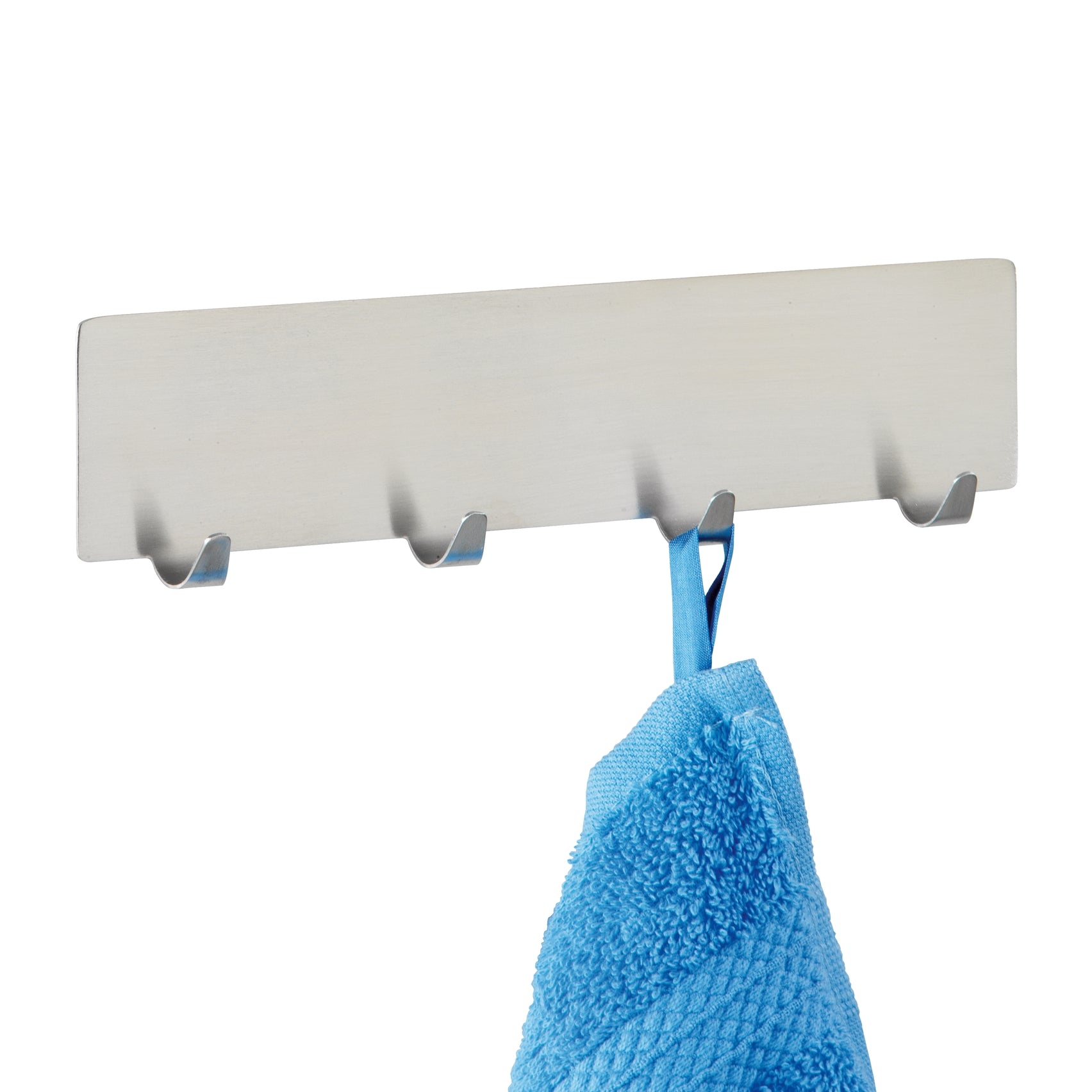 Die hochwertige Wenko Hakenleiste Esperia, aus mattiertem rostfreiem Edelstahl mit 4 Haken ist ideal für den Haushalt mit mehreren Personen geeignet. Die elegante, rechteckige Leiste mit abgerundeten Ecken hilft beim Ordnung halten. So haben Handtuch, Waschhandschuh oder Badetuch stets ihren Platz. Zur Befestigung einfach die Schutzfolie abziehen und die Hakenleiste an die gewünschte Stelle ankleben. Bei Bedarf lässt sie sich rückstandslos entfernen, ohne dass der Untergrund beschädigt wird.