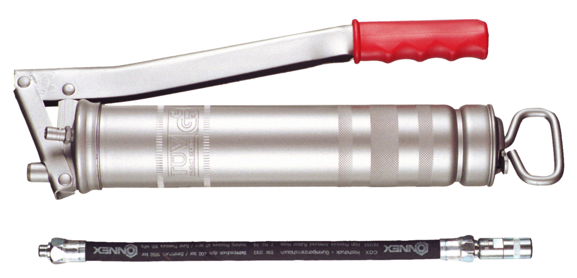 Handhebelfettpresse mit Hochdruck-Gummipanzerschlauch 300mm