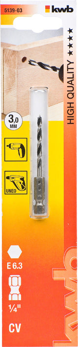 Holzspiralbohrer mit Sechskantaufnahme 1/4'', ø 3.0 mm