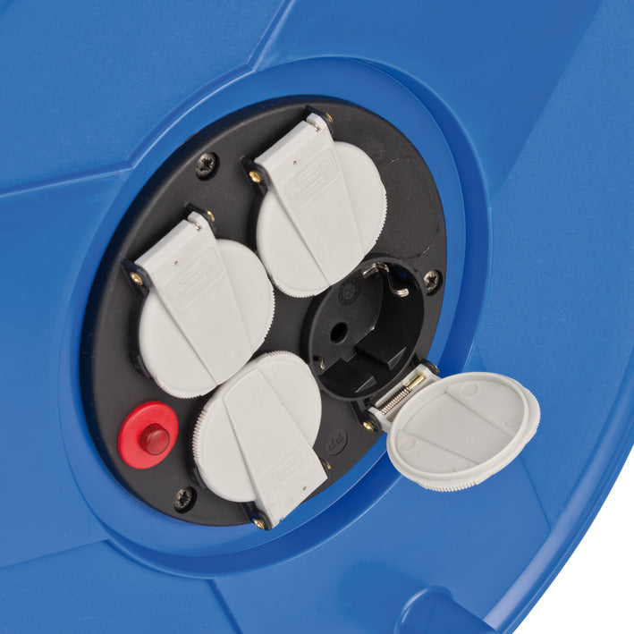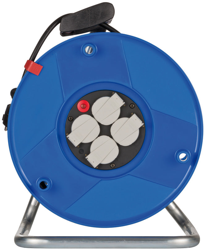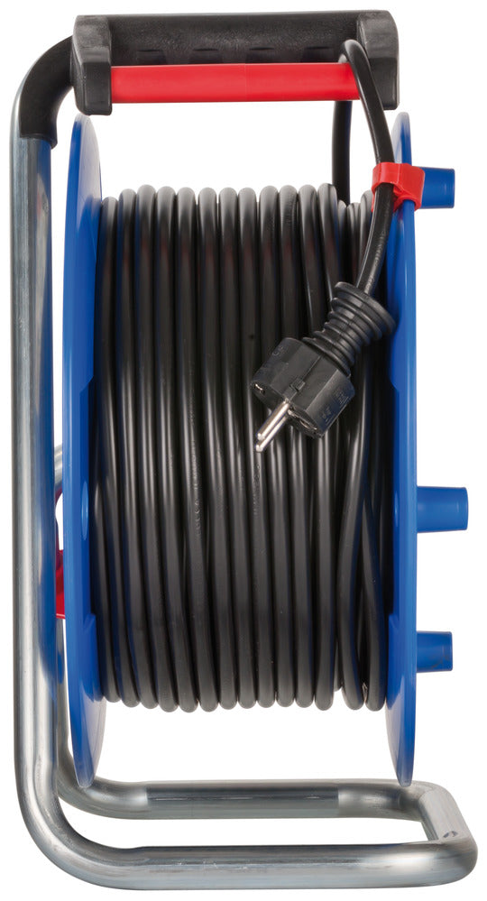 Die Garant Kabeltrommel mit 50m Kabellänge in der Farbe blau von Brennenstuhl überzeugt durch ihre Qualität und Sicherheit in allen Bereichen. Eignet sich ideal für den Einsatz Innen. Sie überzeugt außerdem durch folgende Eigenschaften: * Ergonomischer Handgriff mit Achse für die perfekte Kabelführung beim Auf- und Abrollen * Kabellänge 50 m * Kabelbezeichnung H05VV-F3G1,5 * Kabelqualität Kunststoff * Kabelfarbe Schwarz * Trommeldurchmesser 290 mm