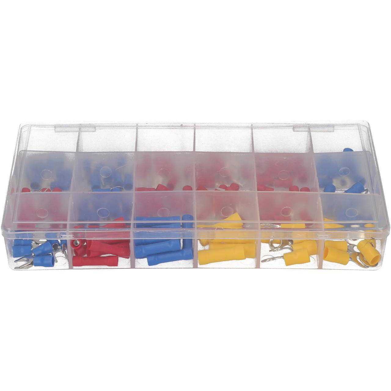 Farbig sortiert. Für lötfreie Kabelverbindungen von 1,5 - 2,5 qmm. Kabel Quetschverbinder 0,5-1,5 mm² 10St. Kabel Quetschverbinder 1,5-2,5 mm² 10St. Kabel Quetschverbinder 4-6 mm² 5St. Flachsteckhülsen 0,5-1,5 mm² 7St. Flachsteckhülsen 1,5-2,5mm² 7St. Flachsteckzungen 0,5-1,5 mm² 7St Flachsteckzungen 1,5-2,5 mm² 7St. Ring-Kabelschuhe 0,5-1,5 mm² 30St. Ring-Kabelschuhe 1,5-2,5 mm² 30St. Ring-Kabelschuhe 4-6 mm² 10St. Gabelkabelschuh 0,5-1,5 mm² 20St. Gabelkabelschuh 1,5-2,5 mm² 7St.