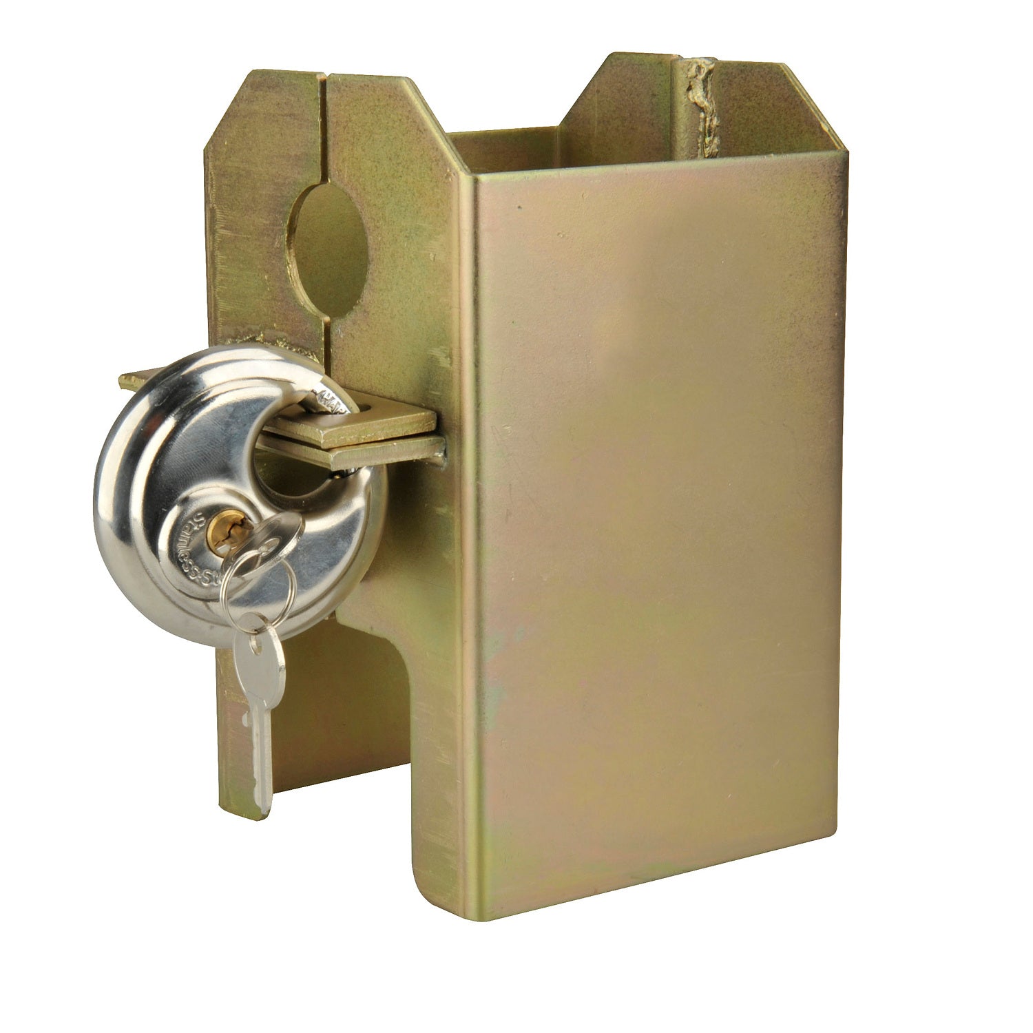 " Kastensicherung aus verzinktem Stahl " Klappbar zur einfachen Montage sowie Demontage " Inklusive Diskusschloss. " Durch die abgeschrägte Form des Kastens kann diese Diebstahlsicherung auch während der Fahrt an der Anhängerkupplung verbleiben. " Passend für alle Kupplungsklauen von Wohn- und Transportanhängern " Verhindert das An- und Abkuppeln des Anhängers und bietet somit einen perfekten Diebstahlschutz.