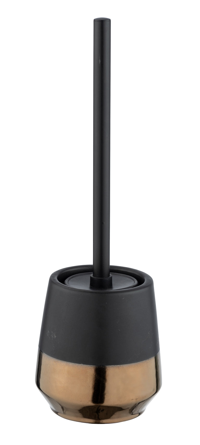 Die Bad-Accessoire Serie Brandol von Wenko besticht durch ein edles Design in Schwarz Matt mit kupferfarbenen Akzenten. Die Accessoires der Serie werten jedes Badezimmer auf und passen ideal zu einer modernen Einrichtung. Der offene WC-Bürstenhalter hält die Toilettenbürste stets griffbereit in Bad und Gäste-WC. Die mitgelieferte WC-Bürste mit einem schwarzen Stiel und einem schwarzen, auswechselbaren Bürstenkopf von Ø 8 cm reinigt die Toilette mit ihren strapazierfähigen Borsten gründlich. Eine Silikonabdeckung schützt zudem vor Blicken. Da uns Langlebigkeit & Nachhaltigkeit am Herzen liegen, verwenden wir qualitativ ausgesuchte Materialien. Damit Sie lange Freude an dem Accessoire haben, ist die WC-Garnitur aus edler Keramik gefertigt. Aus der Serie Brandol sind weitere Accessoires von Wenko erhältlich mit denen Sie Ihre Badezimmer-Einrichtung ergänzen können.