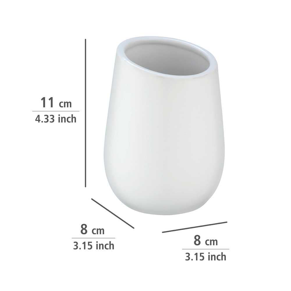 Die zeitlos schöne WENKO Bad-Serie Badi ist aus hochwertiger Keramik gefertigt und verleiht jedem Badezimmer eine moderne Eleganz. Das besondere an der Badaccessoire-Serie sind Ihre puristische Form in Kombination mit einer deckenden Farbe. Der stabile Zahnputzbecher in rein weißem Gewand mit matter Oberfläche fügt sich dezent in Ihr bestehendes Badezimmer-Interior ein. Bad-Zubehör in Weiß vermittelt Reinheit und sorgt insbesondere auf dunklen Ablagen für einen schönen Kontrast. Im eleganten Zahnputzbecher Badi können Sie stilvoll Ihre Zahnbürsten und Zahnpasta griffbereit aufbewahren. Die pflegeleichte und hochwertige Keramik ist langlebig - sollten Sie sich dafür entscheiden, den Zahnputzbecher auszutauschen so verwenden Sie ihn doch als Stifte-Becher oder Pinselhalter weiter. Ergänzend zum Zahnputzbecher bietet WENKO auch die Seifenschale und WC-Garnitur sowie den Seifenspender der Serie Badi an. So holen Sie sich den Frische-Kick ins Badezimmer oder Gäste-WC. Sie mögen es, mit Farben zu spielen? Dann variieren Sie doch die verschiedenen Farbenwelten der Badi-Serie! Von schlichtem Grau bis hin zu sommerlichem Gelb ist alles dabei!