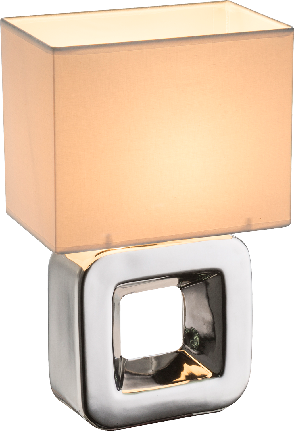 Die dekorative quadratische Tischlampe Kilauea verschönert jeden Raum. Die Basis bildet verchromte Keramik und das weiße Textil ergänzt das Bild dieser Lampe. Mit einer Größe von 20x20 cm lässt sie sich ideal in Ihren Wohnbereich integrieren. Ausgestattet mit einem On-Off-Schalter und einer E14 Fassung (max. 40W), ermöglicht Ihnen dieses Modell die freie Leuchtmittelwahl. Wir empfehlen LED-Lampen aufgrund ihrer Langlebigkeit und Stromersparnis.