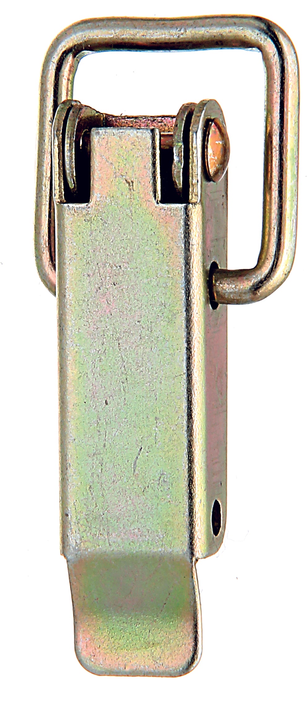 Kistenverschluss ohne Schlossöse und Schließhaken, mit versenkten Schraublöchern, Material: Stahl roh, Oberfläche: galvanisch gelb verzinkt, Höhe: 49 mm, Breite: 13 mm, Schlaufenbreite: 15 mm, für Hakenbreite: 13 mm, Bügel- #: 3 mm, Anzahl Löcher: 2, Loch: #3,7 mm