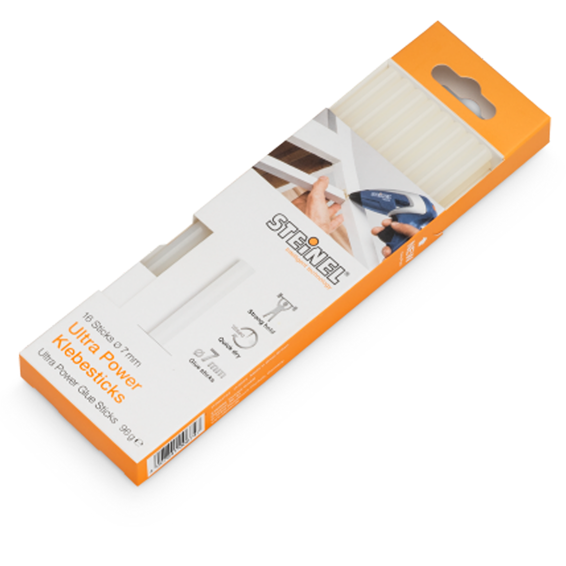 Power-Kleber. Klebesticks Ø 7 mm ULTRA Power, für die Verklebung verschiedener Materialien, besonders kraftvoller Universalklebstoff. Für STEINEL Heißklebepistolen neo1 und neo2.
