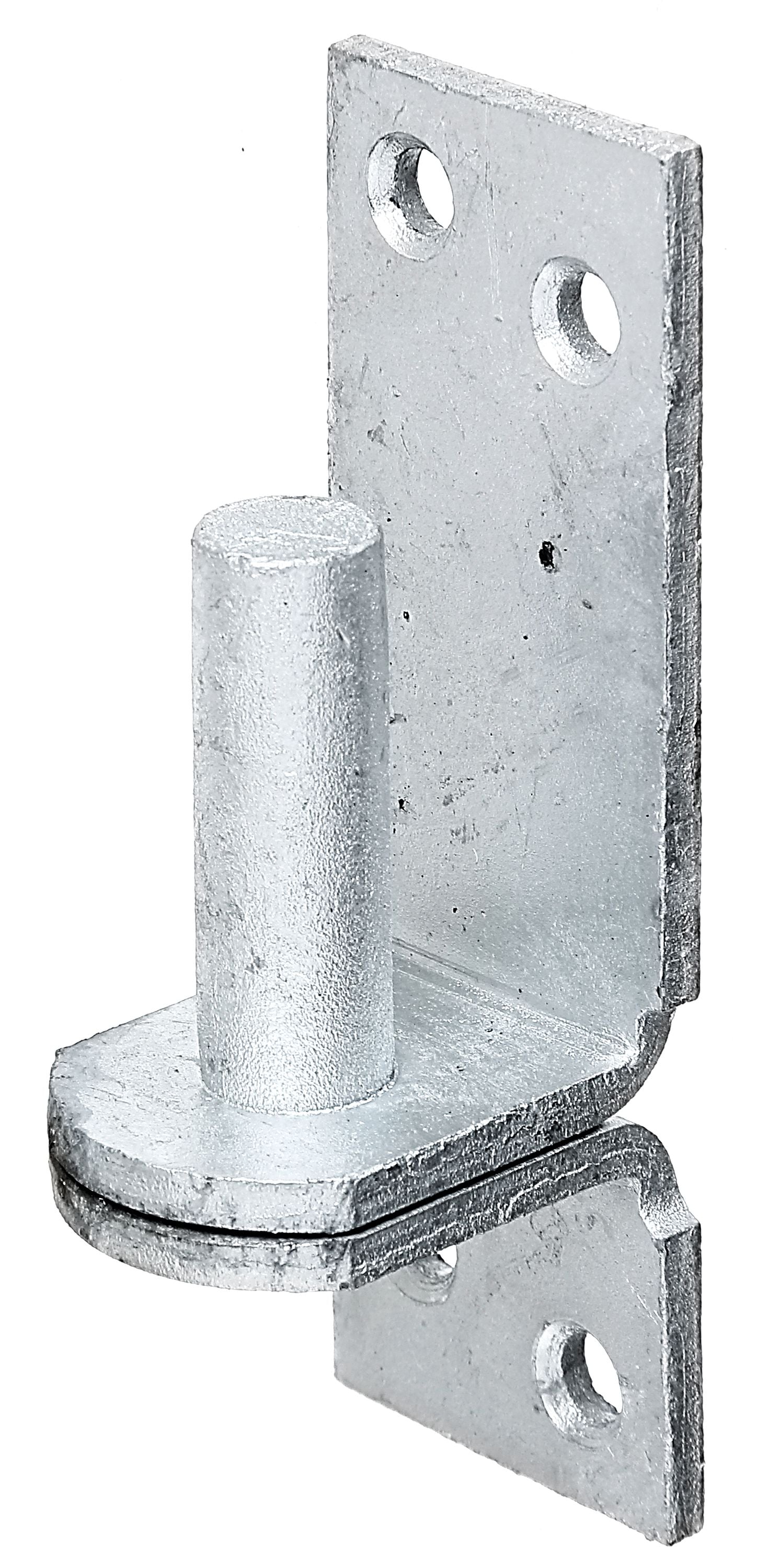 Kloben auf Platte, DI-Haken, mit versenkten Schraublöchern, Material: Stahl roh, Oberfläche: feuerverzinkt, Dornmaß-#: 13 mm, Abstand Dorn - Platte: 11 mm, Plattenhöhe: 100 mm, Plattenbreite: 35 mm, Länge Dorn: 40 mm, Materialstärke: 4,00 mm, Anzahl Löcher: 4, Loch: #6 mm