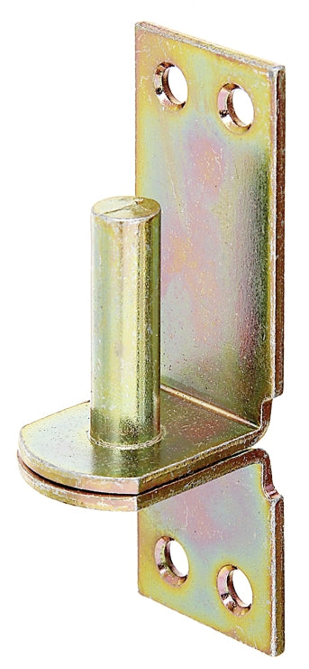 Kloben auf Platte, DI-Haken, mit versenkten Schraublöchern, Material: Stahl roh, Oberfläche: galvanisch gelb verzinkt, Dornmaß-#: 16 mm, Abstand Dorn - Platte: 13 mm, Plattenhöhe: 115 mm, Plattenbreite: 40 mm, Länge Dorn: 45 mm, Materialstärke: 4,50 mm, Anzahl Löcher: 4, Loch: #7,2 mm