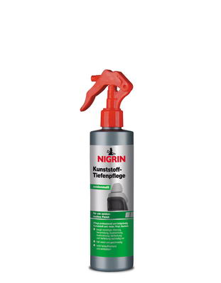 NIGRIN Kunststoff-Tiefenpflege ist die professionelle Pflege für Kunststoff, Vinyl, Gummi und Kunstleder – innen und außen. Sie ist auch für die Pflege und Erhaltung von Luftkanälen und Kühlschläuchen im Motorraum sowie für alle Gummidichtungen, z.B. an Türen, Schiebedach, Kofferraum etc. geeignet.