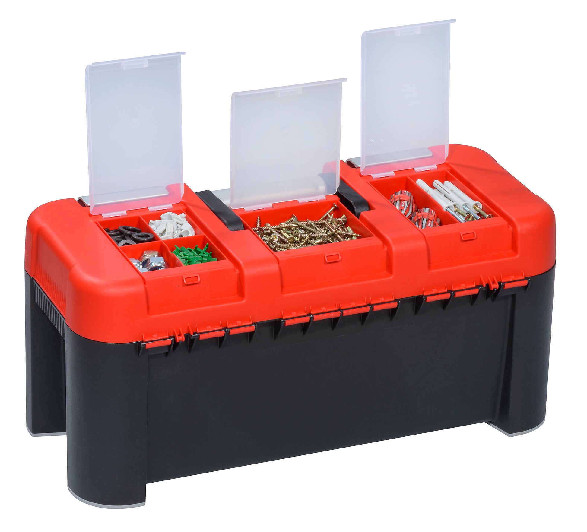 - Herausnehmbarer Tragekasten und im Deckel 3 feste Sortierkästen