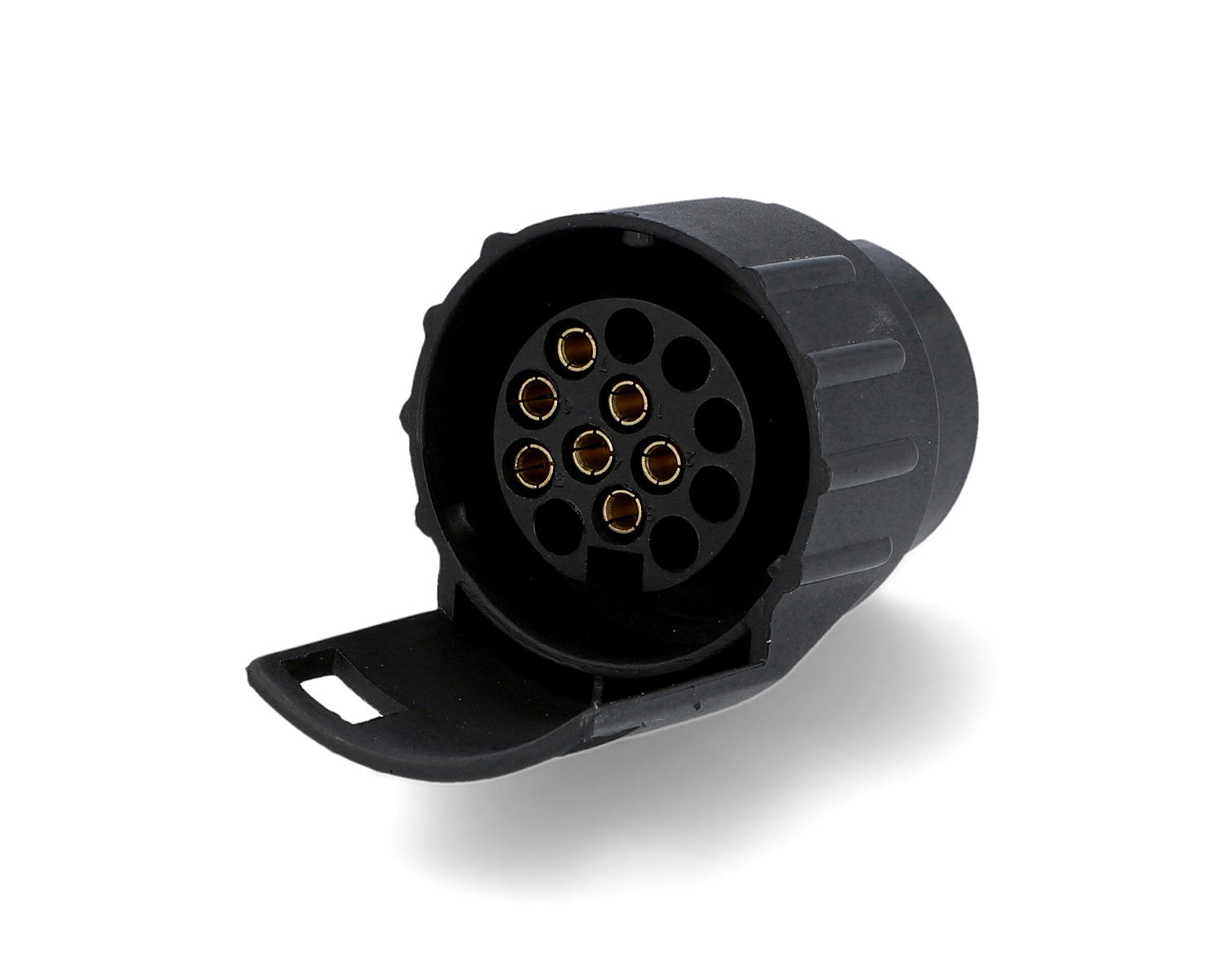 " Miniadapter 12V 7- auf 13-polig " 13-polig bei neuen Fahrzeugen " 7-polig hauptsächlich bei älteren Fahrzeugen, Anhängern, etc. " Entspricht den Normen ISO 1724 und 11446