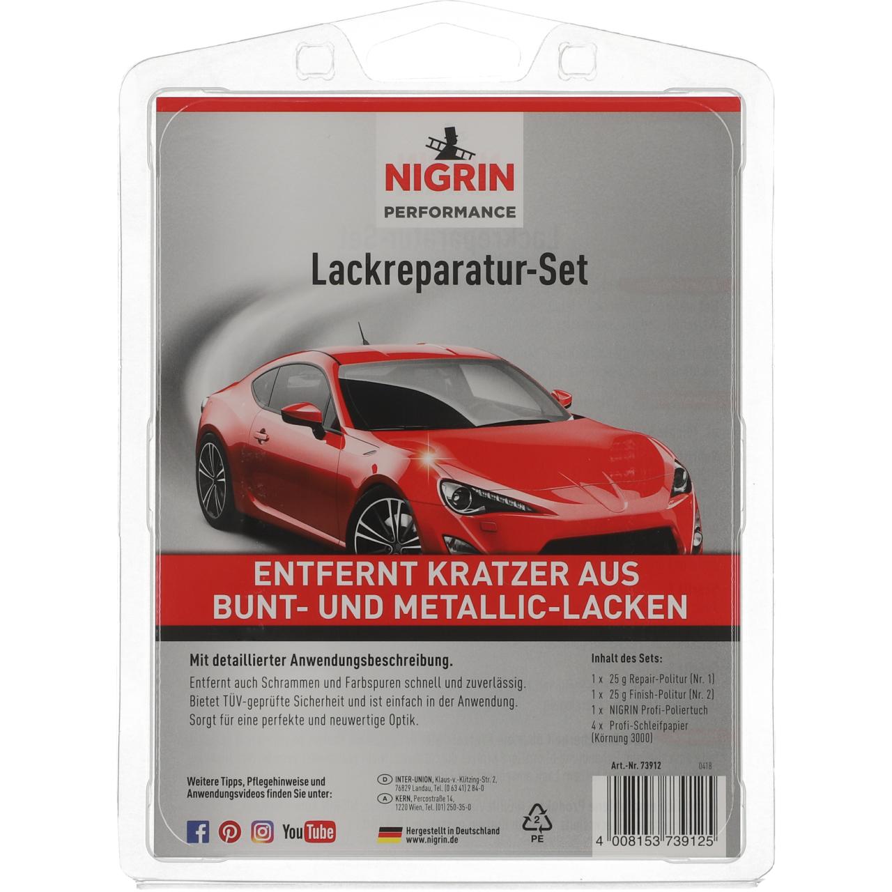 Das TÜV-geprüfte NIGRIN Lackreparatur-Set ist für alle Bunt- und Metallic-Lacke geeignet und sorgt für den Werterhalt und eine neuwertige Optik Ihres Fahrzeugs. Mit den beiden unterschiedlichen Politur-Pasten können Sie sowohl leichtere als auch tiefere Kratzer einfach und zuverlässig beseitigen.