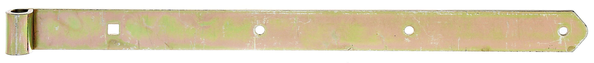 Ladenband, gerade, Abschluss abgerundet, Material: Stahl roh, Oberfläche: galvanisch gelb verzinkt, Länge: 600 mm, Rollen-#: 16 mm, Breite: 45 mm, Materialstärke: 5,00 mm, Anzahl Löcher: 3 / 1, Loch: #9 / 11 x 11 mm