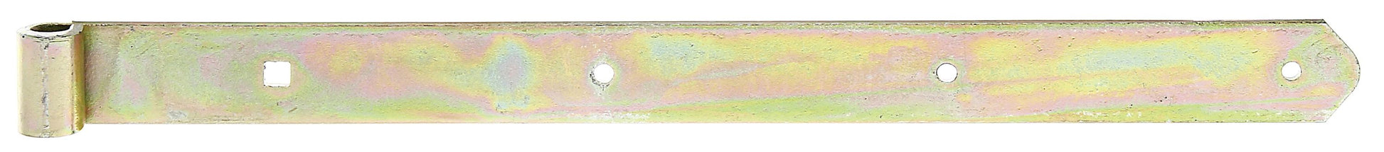 Ladenband, gerade, Abschluss abgerundet, Material: Stahl roh, Oberfläche: galvanisch gelb verzinkt, Länge: 500 mm, Rollen-#: 13 mm, Breite: 40 mm, Materialstärke: 5,00 mm, Anzahl Löcher: 3 / 1, Loch: #7 / 9 x 9 mm