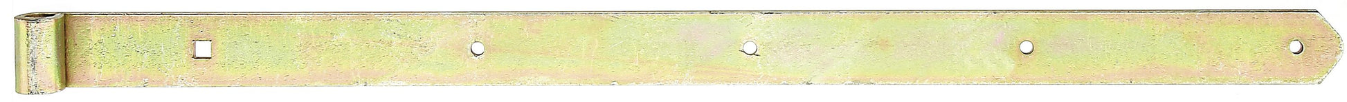 Ladenband, gerade, Abschluss abgerundet, Material: Stahl roh, Oberfläche: galvanisch gelb verzinkt, Länge: 700 mm, Rollen-#: 13 mm, Breite: 40 mm, Materialstärke: 5,00 mm, Anzahl Löcher: 4 / 1, Loch: #7 / 9 x 9 mm