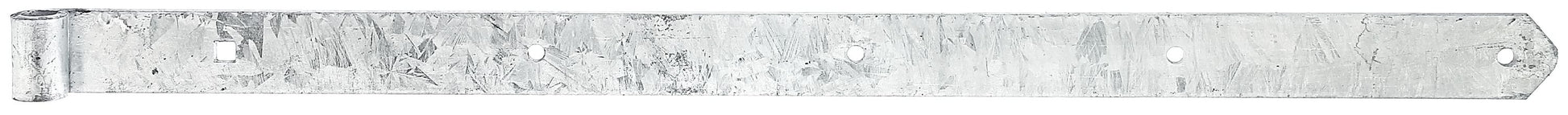 Ladenband, gerade, Abschluss abgerundet, Material: Stahl roh, Oberfläche: feuerverzinkt, Länge: 800 mm, Rollen-#: 16 mm, Breite: 45 mm, Materialstärke: 5,00 mm, Anzahl Löcher: 4 / 1, Loch: #9 / 11 x 11 mm