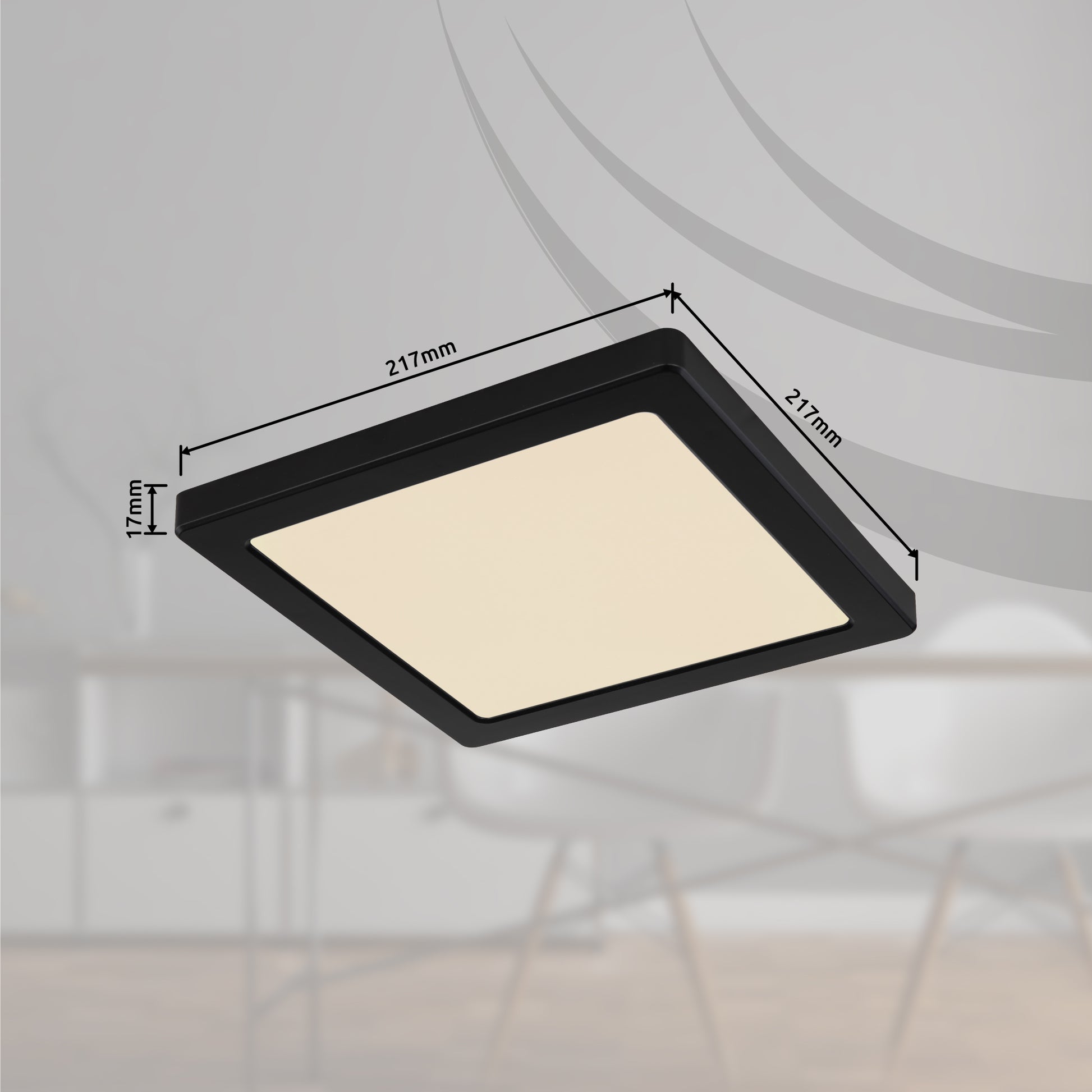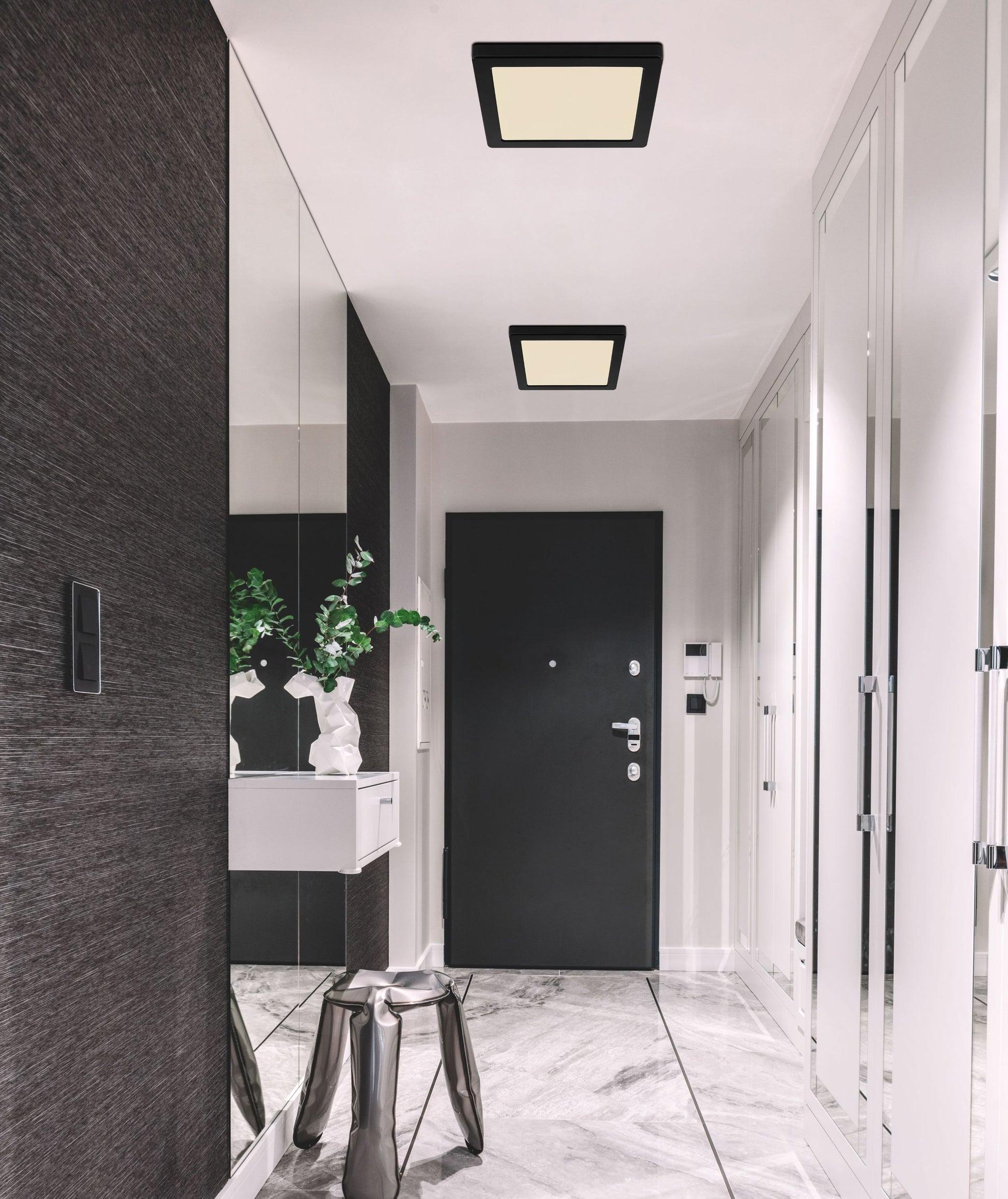 Diese quadratische Deckenleuchte in Schwarz der Serie Lasse begeistert durch Ihr tolles Design. In einem weißen Rahmen mit einer Seitenlänge von ca. 22cm befindet sich eine LED-Platine. Diese kann in den Lichtstufen 3000 Kelvin warmweiß, 4500 Kelvin neutral und 6000 Kelvin kaltweiß fixiert werden und erschafft eine angenehme Atmosphäre.