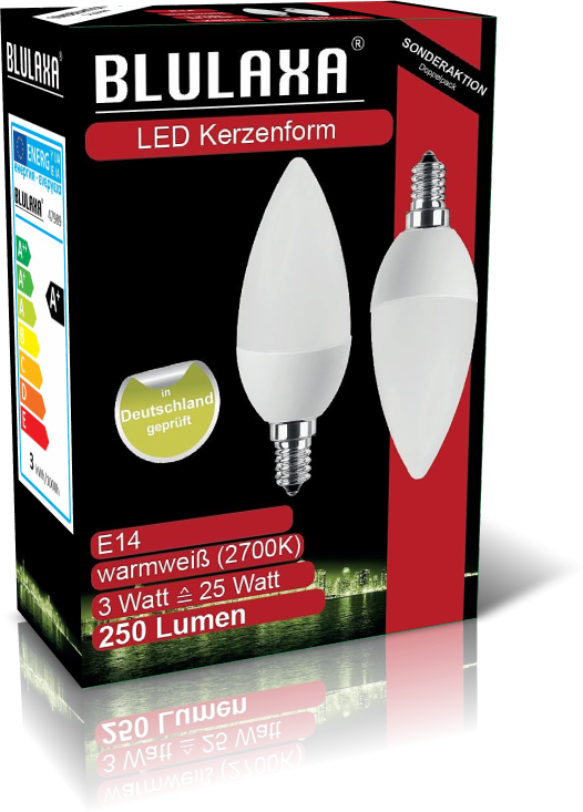 Bei diesem Promotion-Artikel enthält eine Packung gleich 2 LED Lampen Kerzenform E14, die mit 3 Watt ausgestattet sind. Das warmweiße Licht des Leuchtmittels verteilt sich dank opaler Kunststoffabdeckung gleichmäßig und sorgt für eine blendfreie homogene Ausleuchtung. Die LED Lampe Kerzenform 3 Watt E14 ist einer unserer absoluten Bestseller und ist gerade aus diesem Grund ein wichtiger Bestandteil unserer Promotion-Aktion.