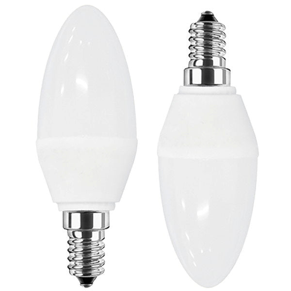Die 5 Watt starke LED Lampe Kerzenform im Doppelpack erstrahlt im warmweißen Licht und ersetzt problemlos herkömmliche 40 Watt Glühlampen. Dank hohem Abstrahlwinkel und der opalen Kunststoffabdeckung wird das Licht gleichmäßig und blendfrei verteilt.
