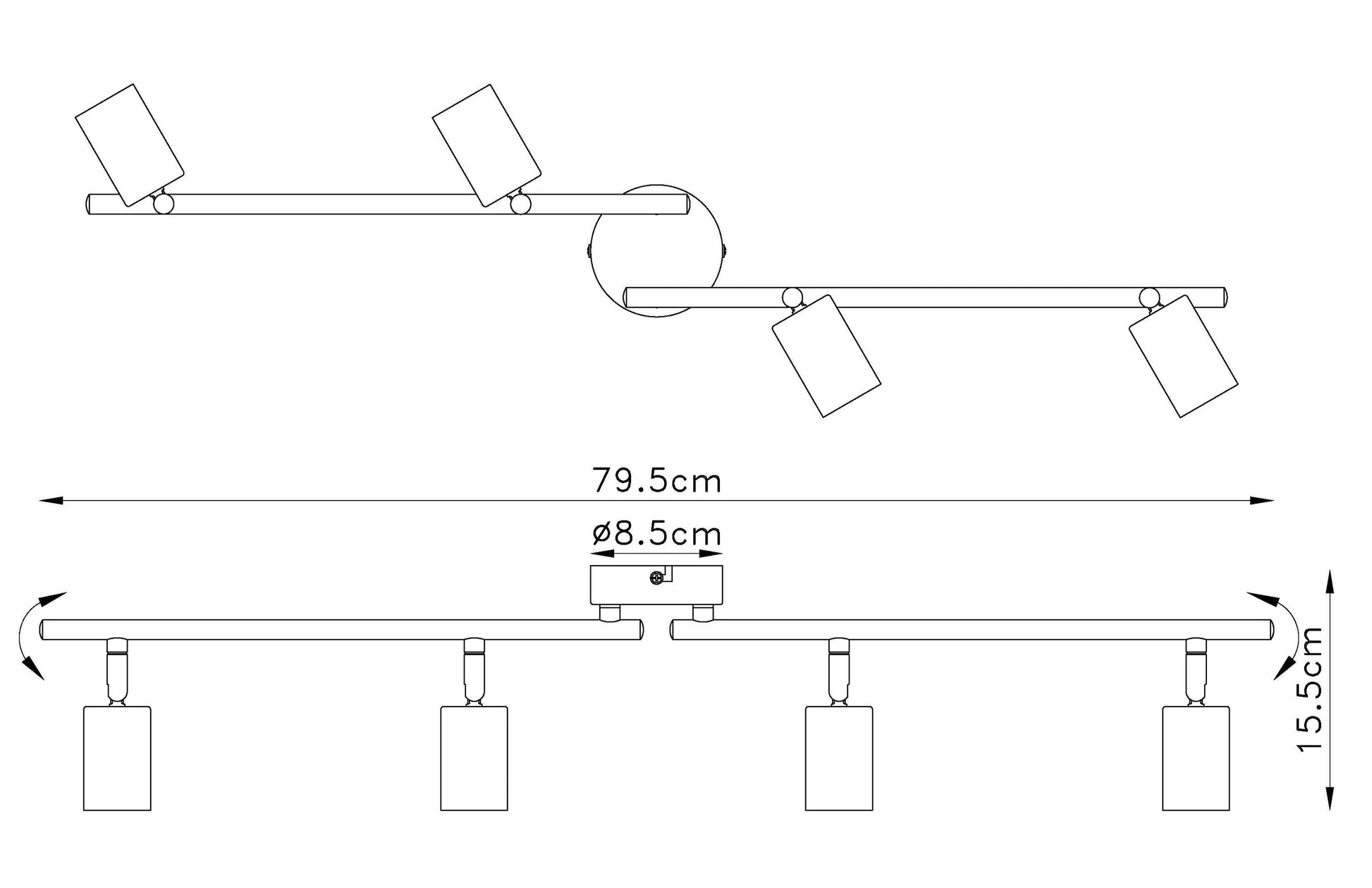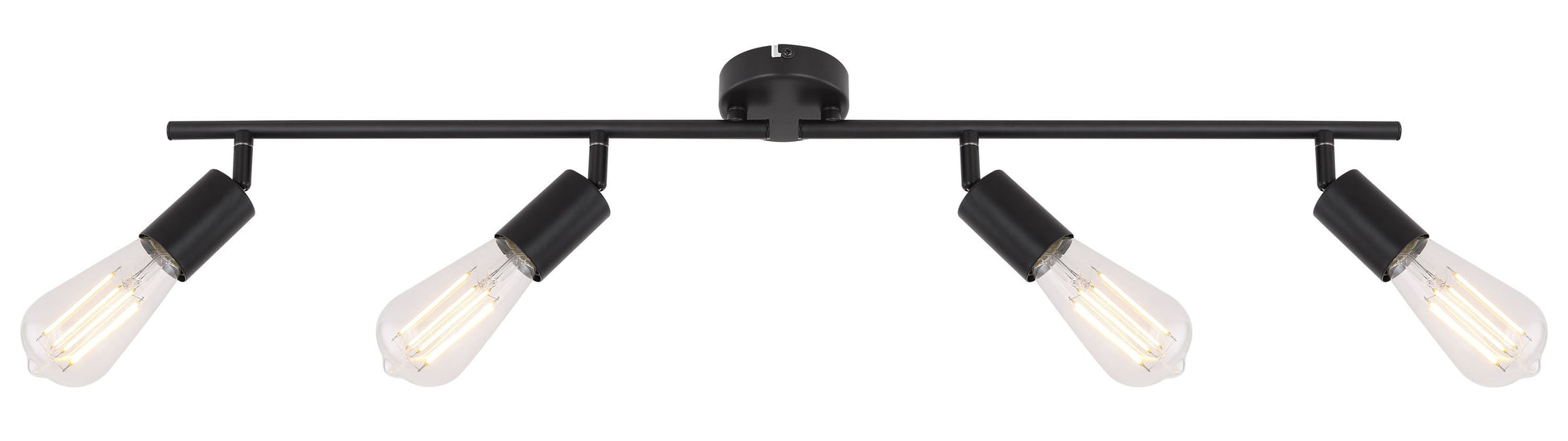 Mit dem vierflammigen Deckenstrahler, mit einer Länge von 80cm, bleibt kein Raumwinkel mehr dunkel, da die Strahler schwenkbar sind. So ergeben sich im gesamten Wohnbereich viele Einsatzmöglichkeiten. Mit seinem modernen Vintage-Design liegt er voll im Trend und lässt sich in viele zeitgemäße Einrichtungsvarianten eingliedern. Sie können die Leuchte mit vier Leuchtmittel mit der Fassung E27 max. 60W ausstatten. Als sparsame Alternative können Sie aber auch Energiesparleuchtmittel oder LED-Leuchtmittel verwenden. Weitere Lampen der gleichen Modellserie könnten das Bild in Ihrem Bereich ergänzen und komplettieren.
