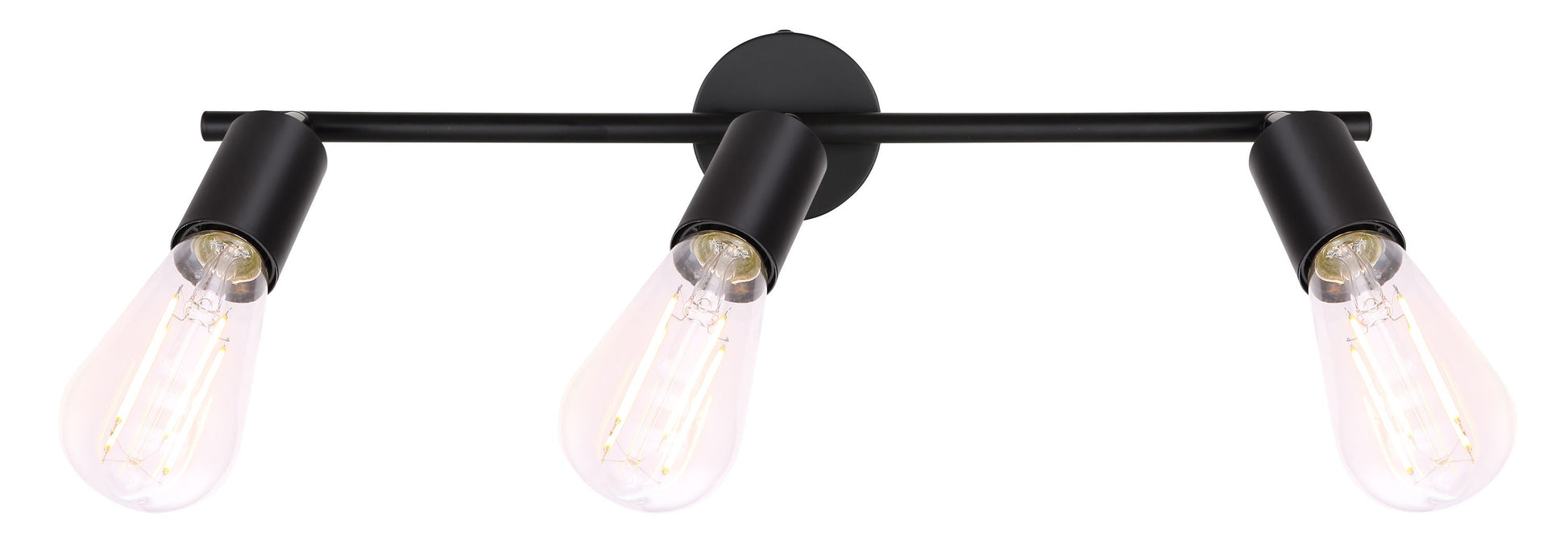 Dieser schlichte Strahler der Serie MARTHA begeistert durch tolles Design. Aus einer runden Deckenbefestigung ragt eine 48 cm lange Metallstange in matt Schwarz, an dieser sich drei E27 Fassungen befinden. Diese überlassen Ihnen die Möglichkeit, bis zu einer maximalen Leistung von 60 Watt, selbst über Lichtfarbe und Helligkeit zu bestimmen. Aufgrund von Stromersparnis und Langlebigkeit empfehlen wir LED Leuchtmittel.