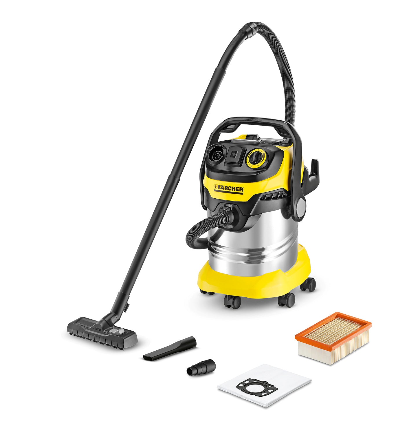 Der WD 5 P Premium ist ein extrem saugstarker Mehrzwecksauger, der durch einen Stromverbrauch von nur 1100 Watt überzeugt. Ein korrosionsfreier 25-l-Edelstahlbehälter gehört ebenso zur Geräteausstattung wie eine Steckdose mit Ein-/ Ausschaltautomatik für den Anschluss von Elektrowerkzeugen. Hinzu kommt die neue patentierte Filterentnahmetechnik: Der Flachfaltenfilter befindet sich in einer herausnehmbaren Kassette und lässt sich ohne Schmutzkontakt schnell und einfach austauschen. Ohne Filterwechsel kann sowohl trockener als auch nasser Schmutz aufgesaugt werden. Einzigartig ist auch die herausragende Filterreinigung: Starke Impuls-Luftstöße befördern den Schmutz per Knopfdruck aus dem Filter und stellen sicher, dass die Saugleistung schnell wiederhergestellt wird. Der neue Saugschlauch und die neu entwickelte umschaltbare Bodendüse mit 2 Gummi- und 2 Bürststreifen sorgen für eine perfekte Schmutzaufnahme. Der WD 5 P Premium verfügt über weitere Komfortmerkmale wie z.B. abnehmbarer Handgriff mit elektrostatischem Schutz, Parkposition für Saugrohr und Bodendüse, Blasfunktion, patentierter 3-in-1-Bügelgriff sowie Kabel- und Zubehöraufbewahrung.