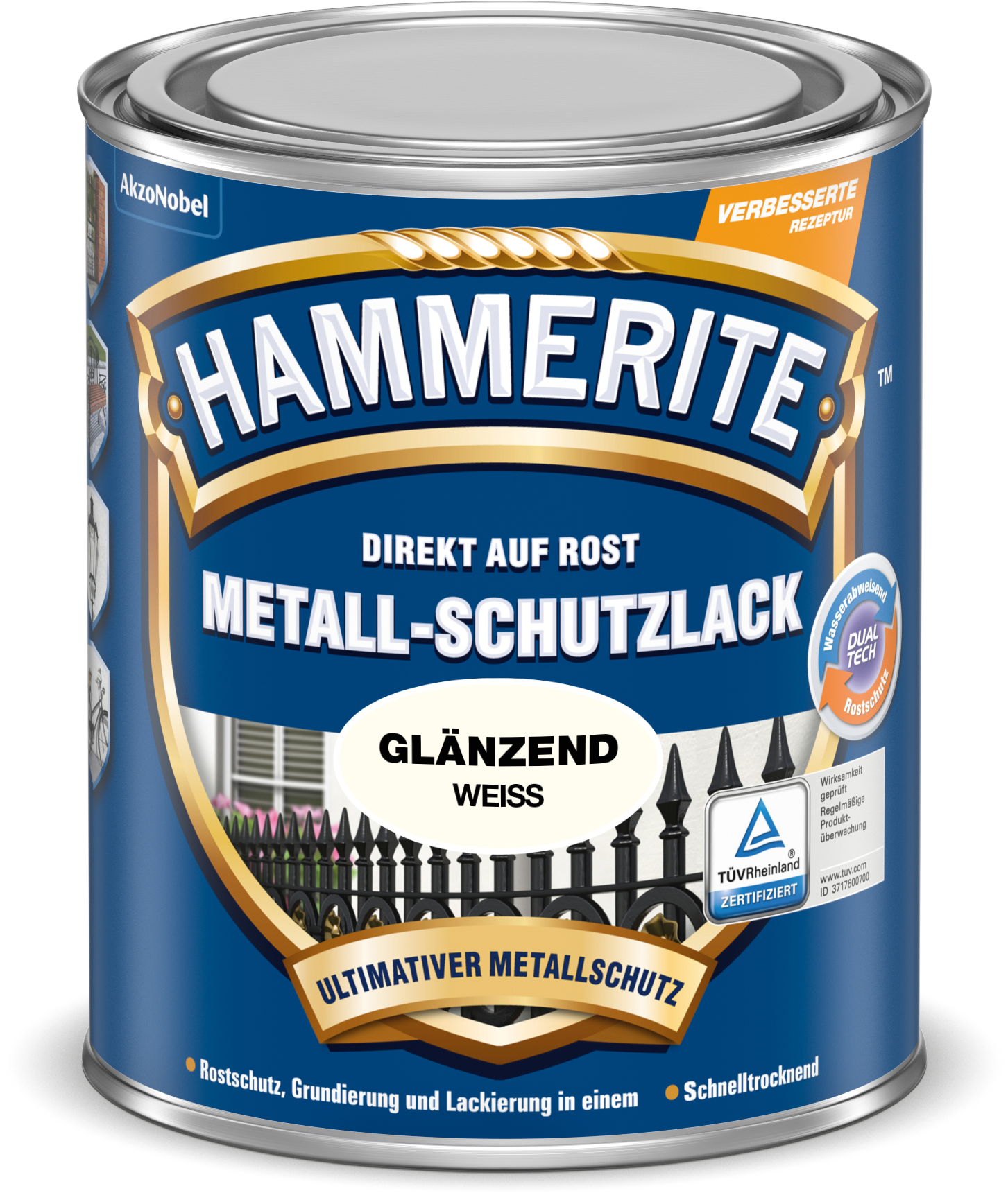 Mit dem Hammerite Metall-Schutzlack Glänzend in Weiß schützt du deine Metallobjekte effektiv und verleihst ihnen ein langanhaltend schönes Aussehen.