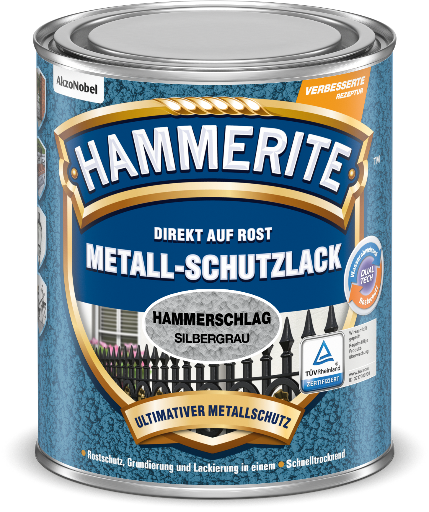 Hammerite Metall-Schutzlack Hammerschlag – Silbergrau, 250 ml: Dein Rostschutz mit besonderer Optik