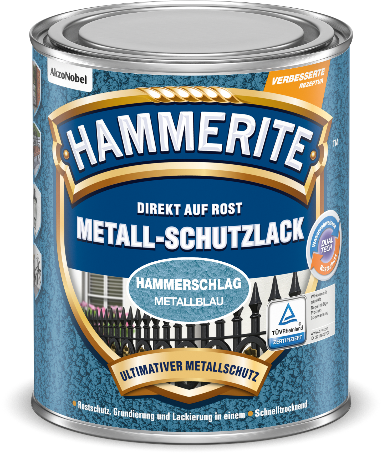 Hammerite Metall-Schutzlack Hammerschlag – Metallblau, 250 ml: Dein Rostschutz mit besonderer Optik