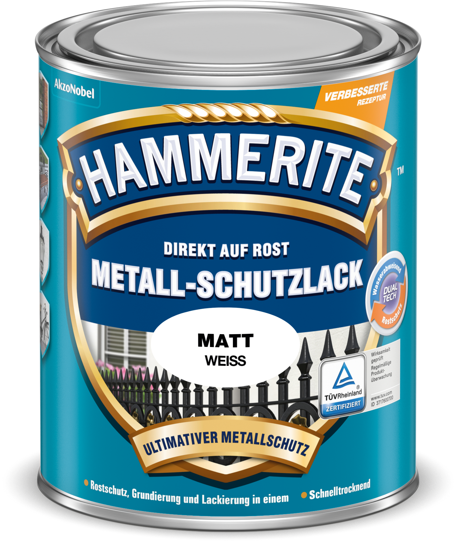 Hammerite Metall-Schutzlack Matt Weiß 250ml: Der 3-in-1 Schutz für Metalle