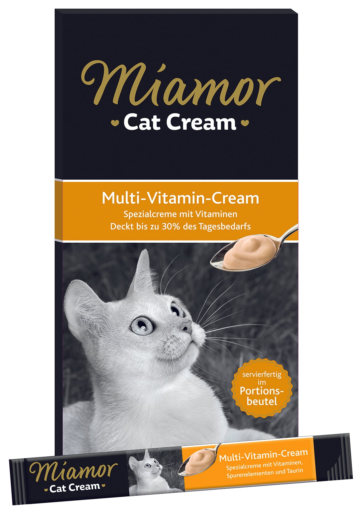 Spezialcreme mit Vitaminen Deckt bis zu 30% des Tagesbedarfs. Servierfertig im Portionsbeutel. Ergänzungsfuttermittel für Katzen.
