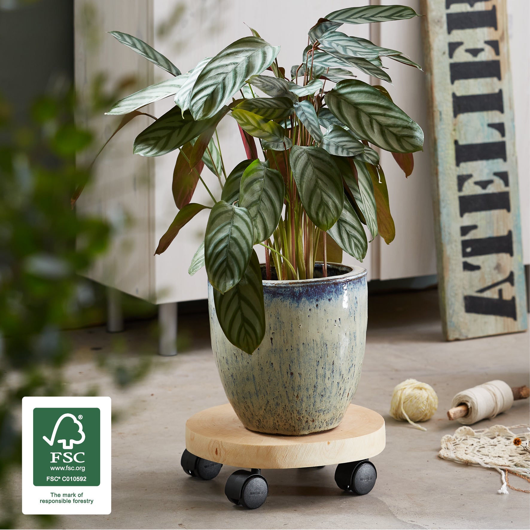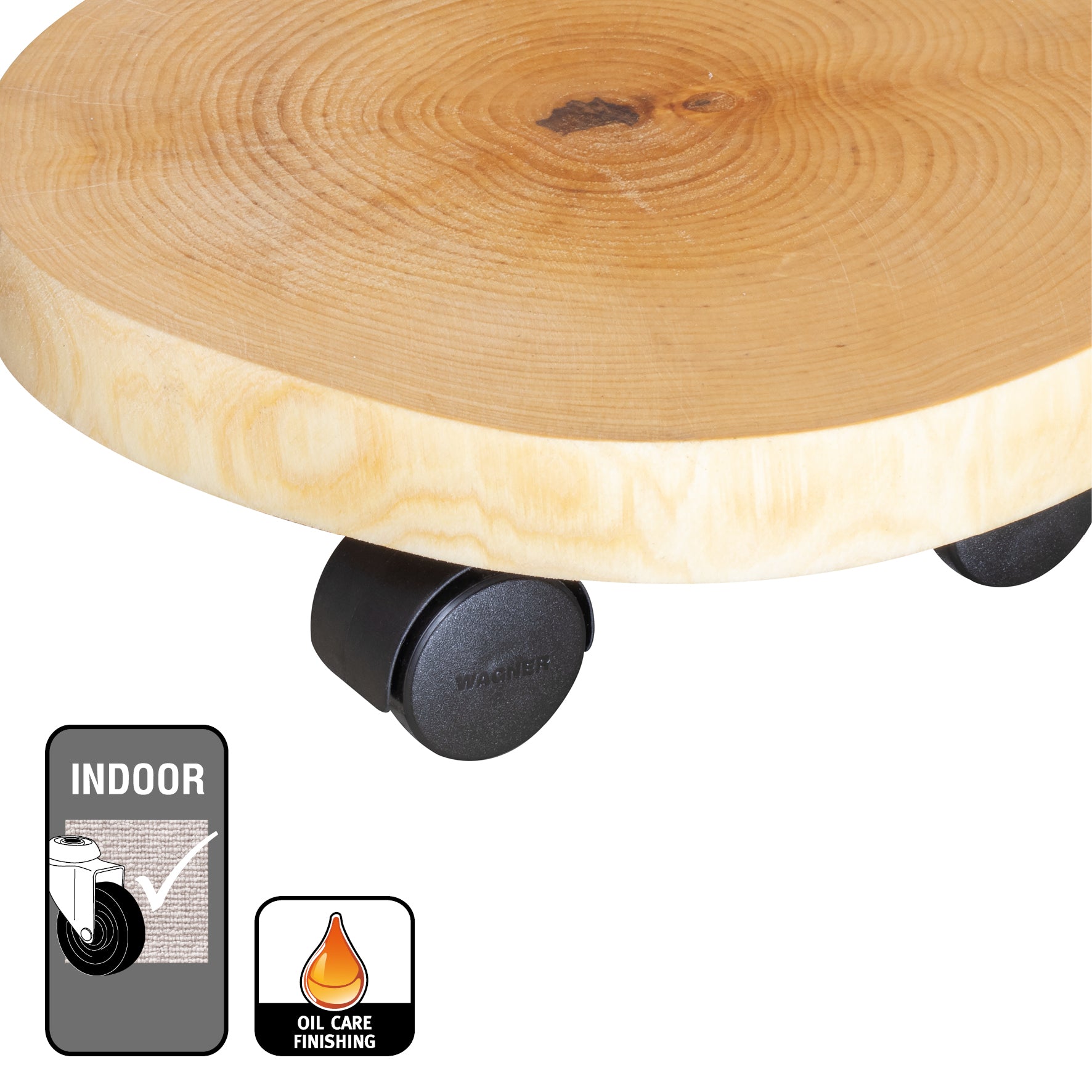 WAGNER Pflanzenroller BAUMSTAMM UNIKAT Ø 25-30 x 8 cm I Blumenroller für Innenbereich I Kübelroller aus Baumstammscheibe, Birke natur geölt I Tragkraft 50 kg