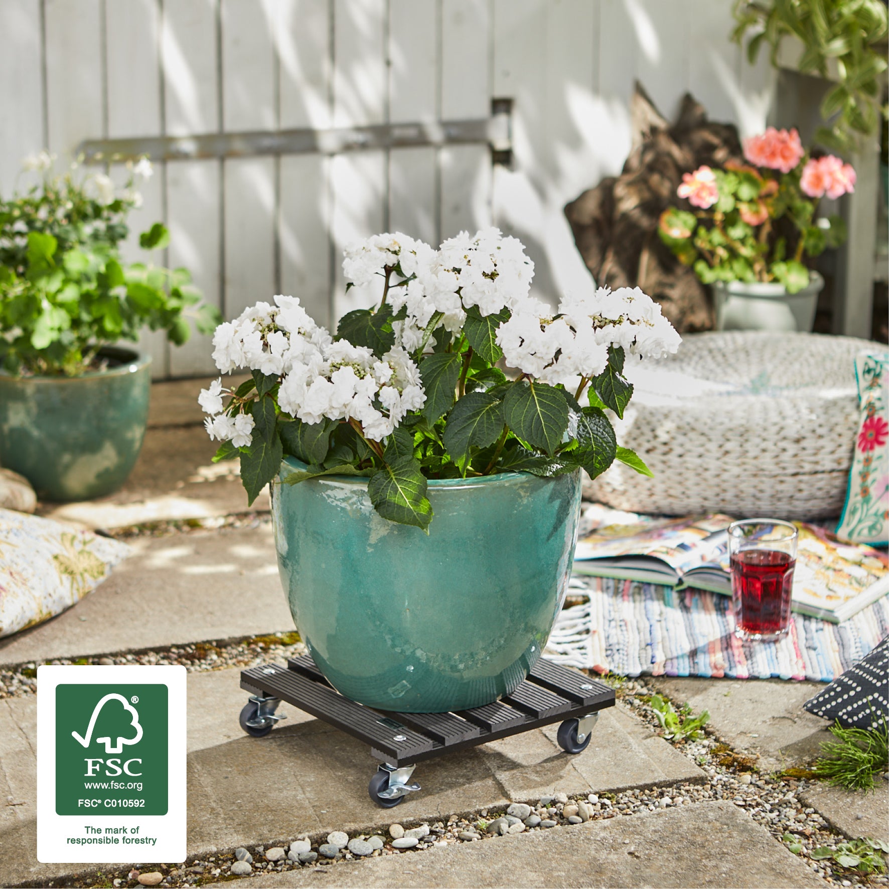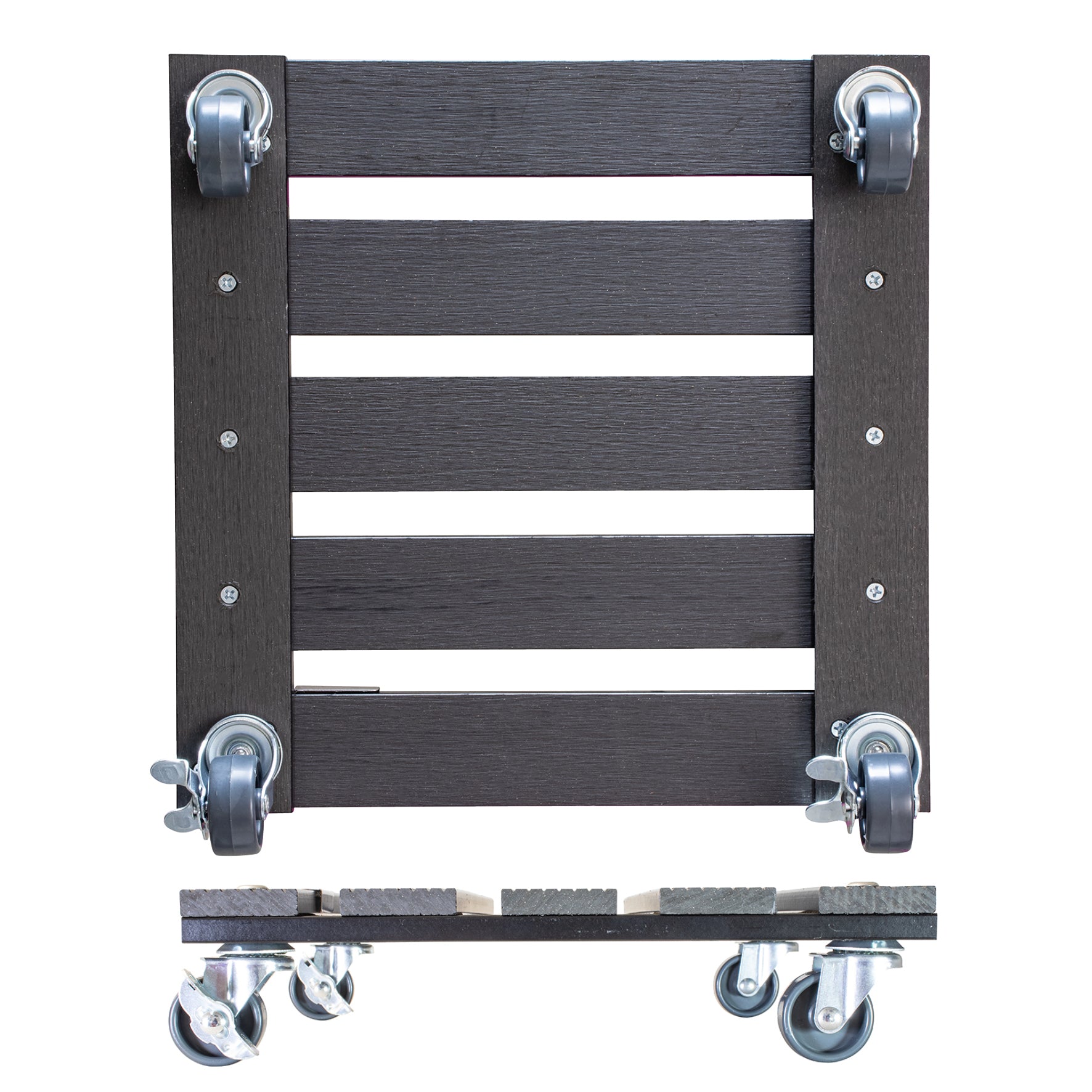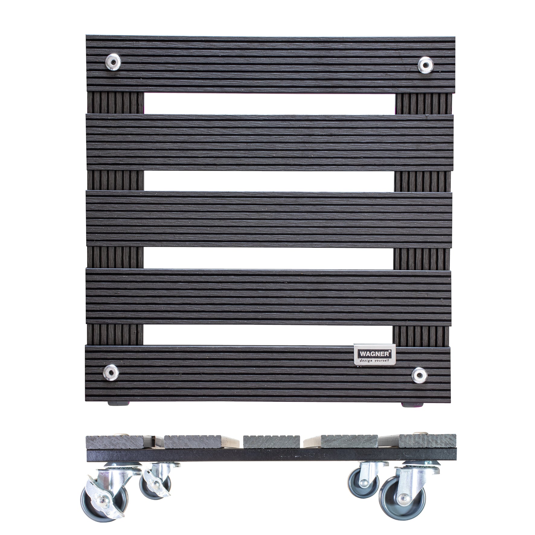 WAGNER Pflanzenroller WPC 29 x 29 x 7,5 cm I Blumenroller für Außenbereich + Innenbereich I Kübelroller FSC® Wood Plastic Composite, anthrazit I 2 Feststeller I Tragkraft 80 kg