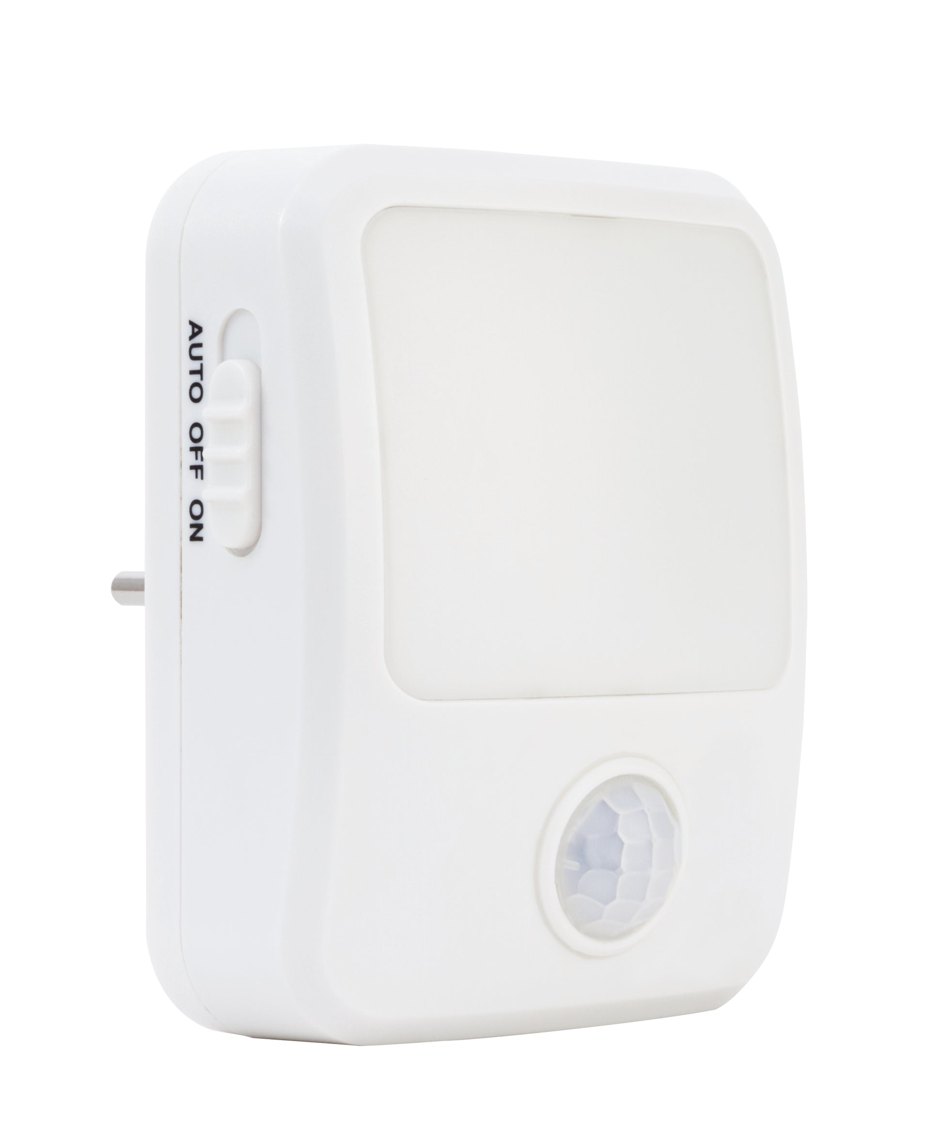 Energiesparende LED-Technik Passiver Infrarot-Sensor, der auf Bewegung reagiert und sich automatisch einschaltet Integrierter Dämmerungsschalter Erfassungswinkel: 120° Reichweite: max. 7 m 1 x LED; max. 0,5 W Handschalter: AUTO - OFF - ON 230 V~; max. 1 W; 50 Hz
