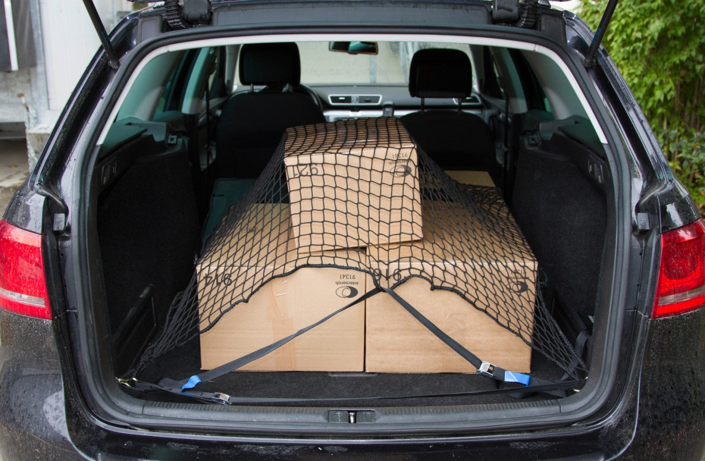 Ihr zuverlässiger und preiswerter Helfer gegen herumfliegendes Gepäck: Das Ladungssicherungsnetz für PKW/Kombi (120 x 100 cm)