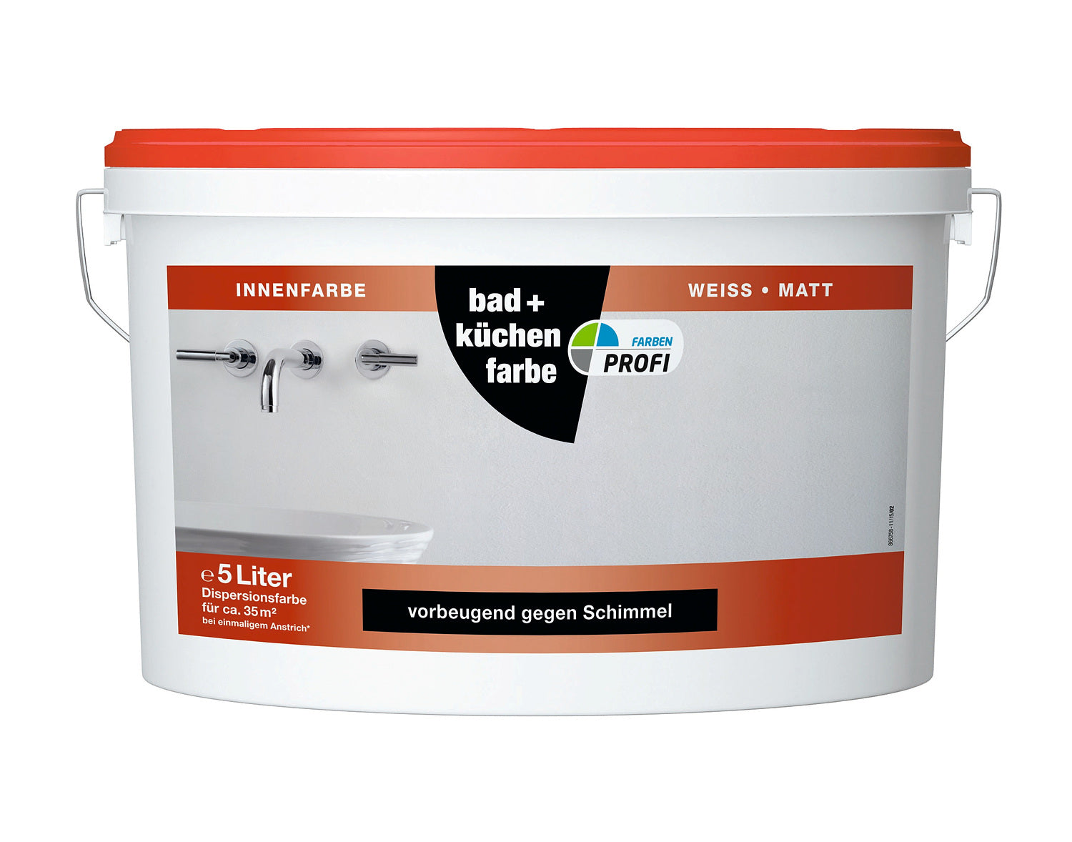 Matte, weiße Dispersionsfarbe. Vorbeugender Anstrich für schimmelgefährdete Wände.
