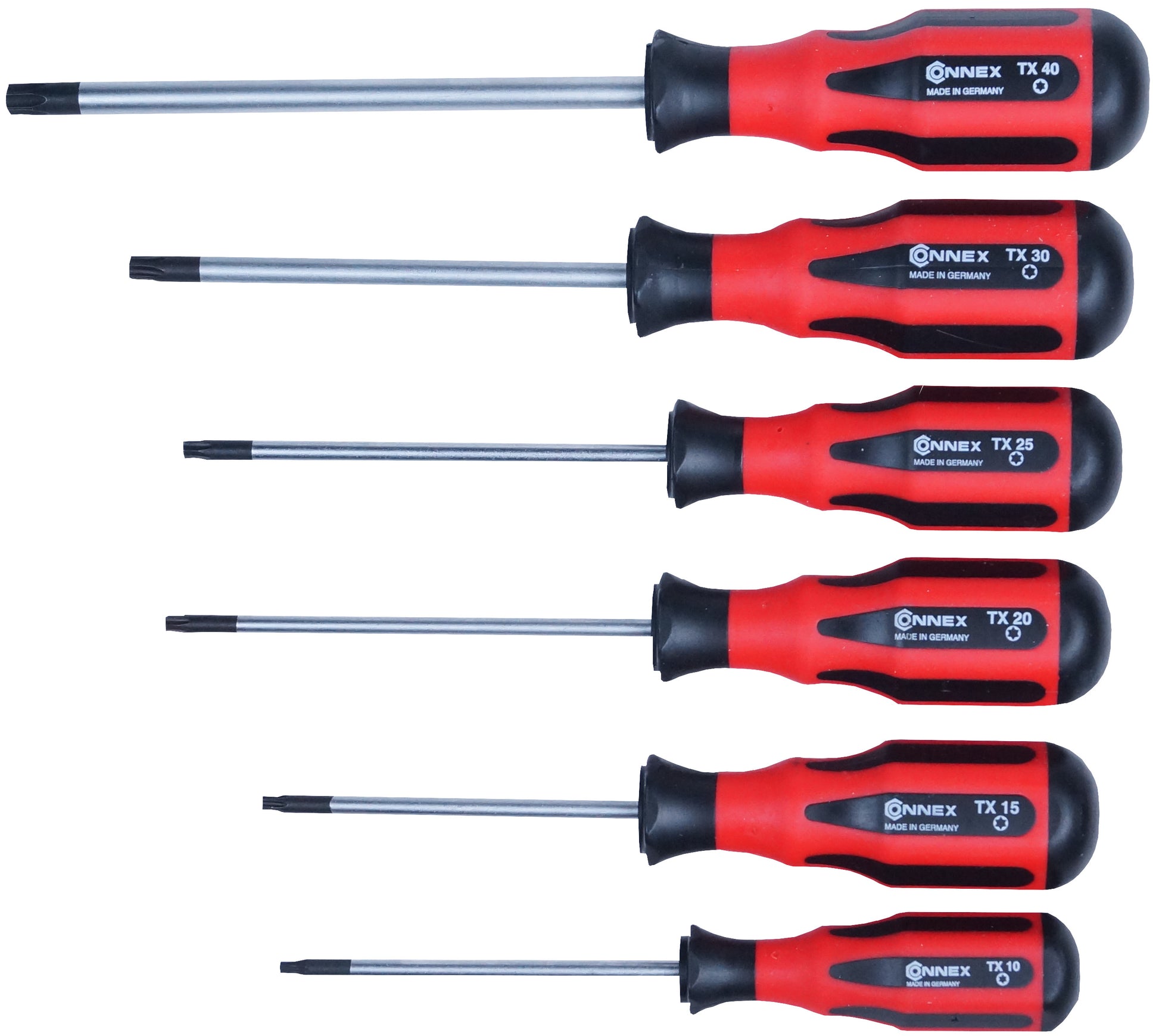 Der Profi-Schraubendrehersatz TX 6-teilig von Conmetallmeister ist ein hochwertiges Werkzeugset für Profis und ambitionierte Heimwerker. Mit diesem Set erhalten Sie 6 verschiedene Schraubendreher in unterschiedlichen Größen, die für eine Vielzahl von Anwendungen geeignet sind. Der Schraubendrehersatz besteht aus einem TX10, TX15, TX20, TX25, TX30 und TX40 Schraubendreher. Alle Schraubendreher sind aus Chrom-Vanadium-Stahl gefertigt und bieten eine hohe Beständigkeit und eine lange Lebensdauer. Der ergonomisch geformte Griff bietet einen sicheren Halt und eine komfortable Handhabung. Dieser Schraubendrehersatz ist ein unverzichtbares Werkzeug für jeden Handwerker.