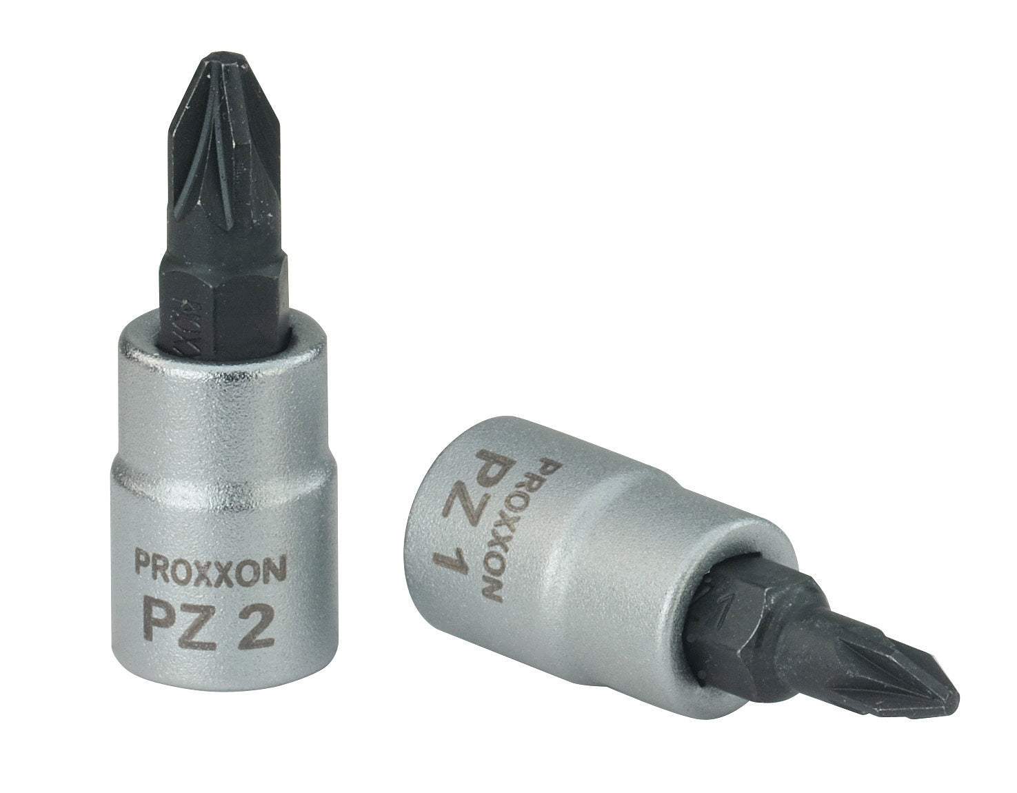 PROXXON Schrauben-Einsatz mit einem Sockel aus CrV-Stahl und einer Klinge aus Chrom-Silicium-Mangan-Molybdän-Stahl.