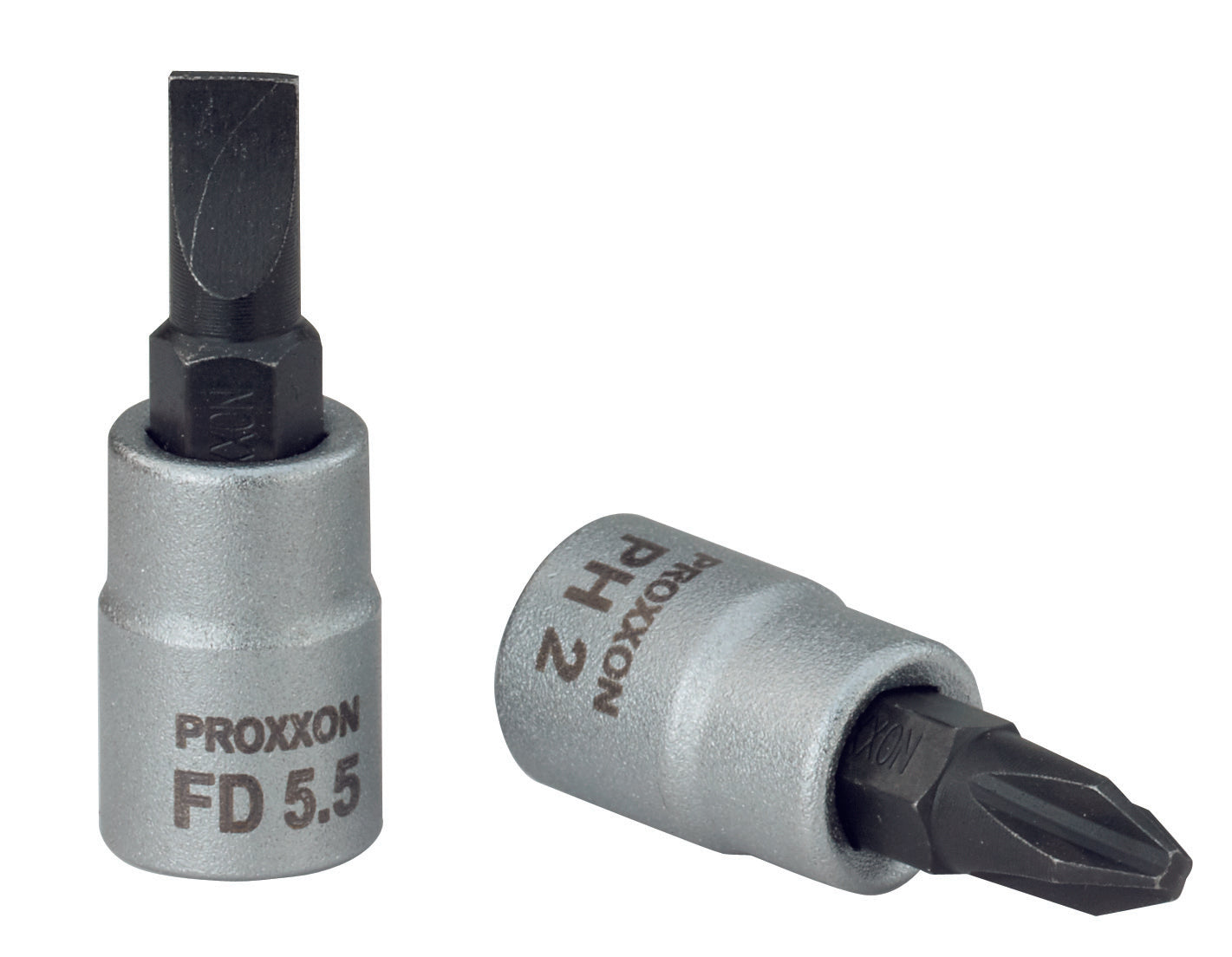 PROXXON Schrauben-Einsatz mit einem Sockel aus CrV-Stahl und einer Klinge aus Chrom-Silicium-Mangan-Molybdän-Stahl.