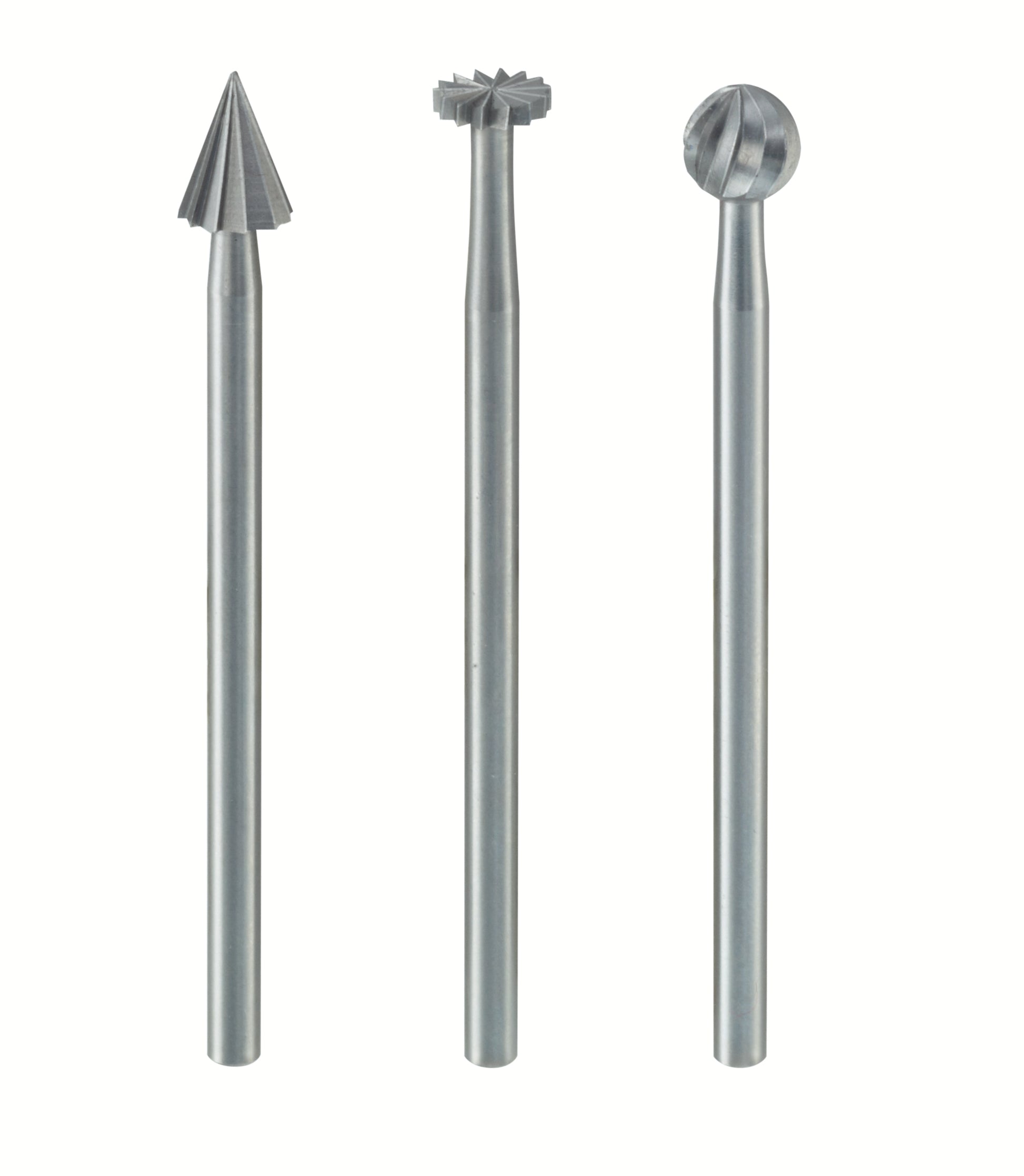 PROXXON-Feinfräsersatz (Wolfram-Vanadiumstahl), 3-tlg. (Rad, Kugel, Kegel)