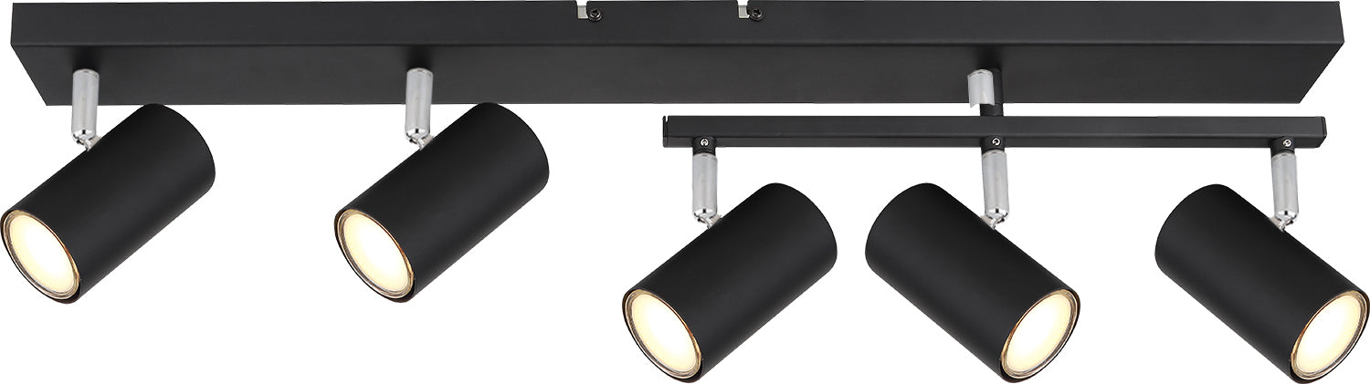 Dieser wunderschöne Strahler begeistert durch tolles Design. An einer 70cm langen schwarz matten Stange befinden sich zwei GU10 Fassungen mit beweglichen Gelenken und drei weiteren GU10 Fassungen mit einer zusätzlichen schwarz matten beweglichen Stange. Die GU10 Fassungen ermöglichen Ihnen die freie Auswahl, bis zu einer maximalen Leistung von 35 Watt, Ihrer Leuchtmittel.