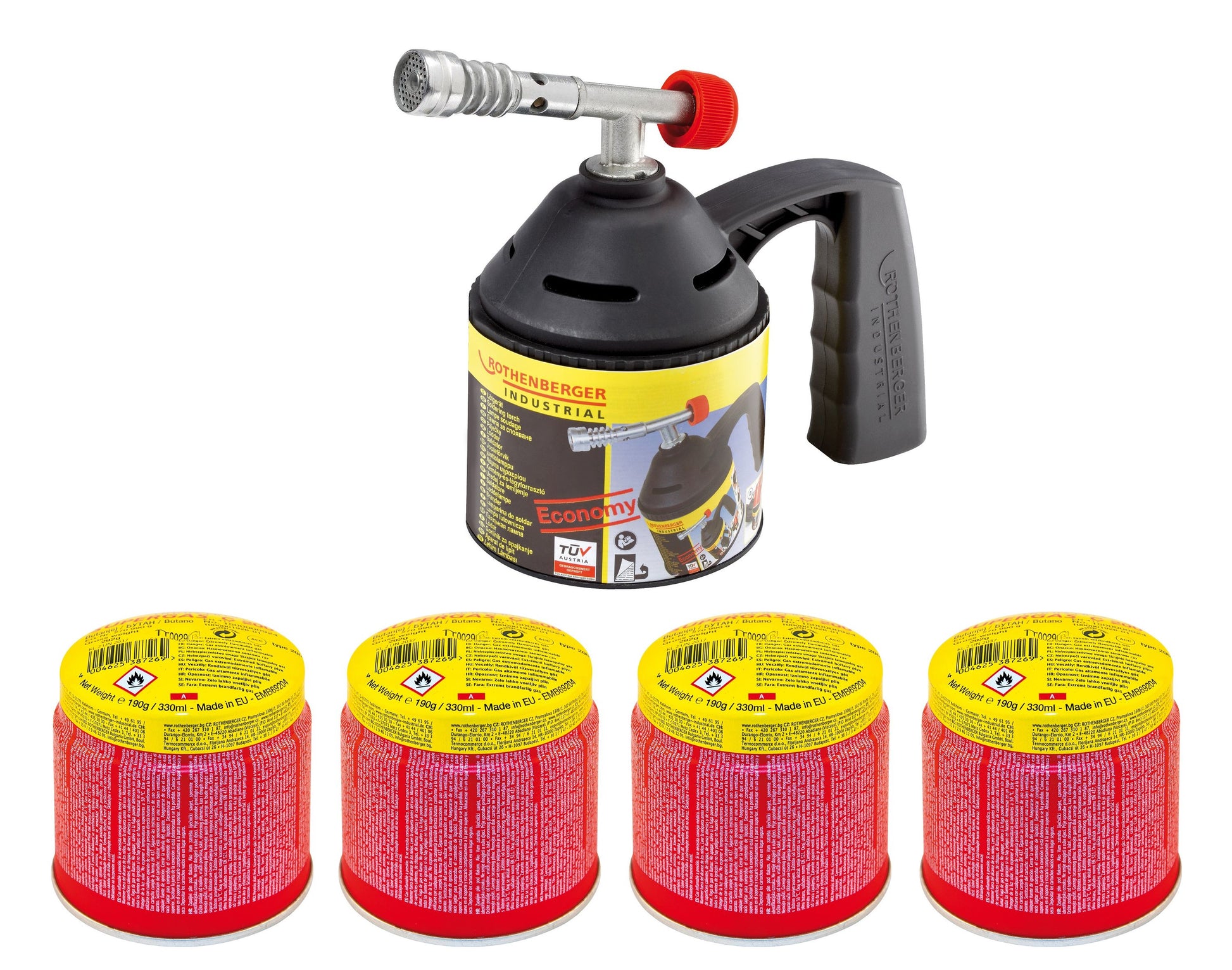RoFlame Economy Lötlampenset m. 5 Gaskartuschen C 200