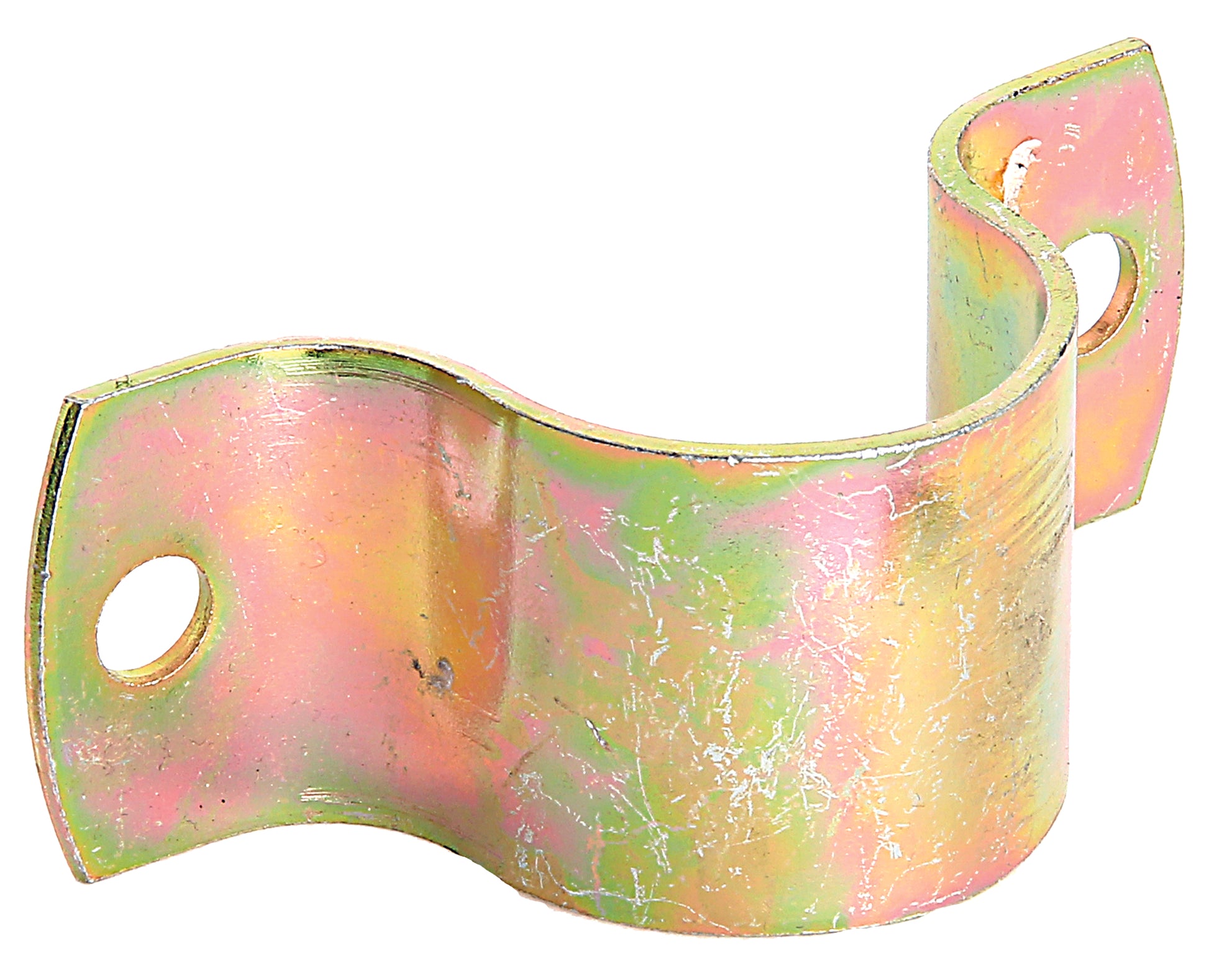 Rohrschelle, Material: Stahl roh, Oberfläche: galvanisch gelb verzinkt, Tiefe: 40 mm, Höhe: 39,5 mm, Breite: 104 mm, Außen-#: 42,4 mm, für Rohr-#: 1 2/3 Zoll, Materialstärke: 3,00 mm, Anzahl Löcher: 2, Loch: #10 mm