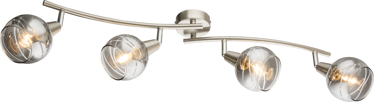 Mit diesem elegant gestalteten, nickel matten Strahler, der Lampenserie Roman, werden schöne Akzente gesetzt. Eingesetzt z. B. im Wohnzimmer, kann dieses Modell, mit vier rauch-klaren Gläsern, zu einer schönen Umgebung beitragen. Diese Lampe inkludiert austauschbare LED-Leuchtmittel, mit einer angenehmen, warmweißen Farbe von 3000K und einer Lebenszeit von 25.000 Stunden. Außerdem überzeugt sie mit ihrer hohen Energieeffizienz. Mit weiteren Decken- und Wandlampen dieser Serie können Sie Ihr Bild komplettieren.